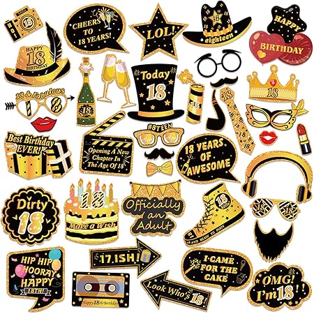 31 Pièces 18 ans Decoration Anniversaire,Photobooth Anniversaire... Adaptation multi-scène : non seulement des accessoires photo, des décorations, des accessoires de jeux interactifs et d'autres polyvalents, peuvent être posés, tenus à la main, adaptables à l'intérieur et à l'extérieur, pour la fête, de l'installation à l'autonomisation interactive de l'ensemble du processus, le coût rentable complet. Matériau de haute qualité et durable : carton épais sélectionné, pas facile à plier et à casser, réutilisable sans poudre, correctement conservé après la fête, peut encore être réutilisé pour la prochaine fête, respectueux de l'environnement et de l'économie, les besoins à long terme de la fête sans inquiétude. Accessoires Photobooth Anniversaire 18 Ans Deco Anniversaire 18 Ans Noir ,18 Ans Décorations Anniversaire Argent Kit Décoration Anniversaire Noir Or 30 Pièces Ambiance de fête : 30 pièces d'accessoires brillants en or, noir et argent (y compris des chapeaux, des masques, des lunettes et d'autres éléments), adaptés aux anniversaires, au réveillon du Nouvel An, aux fêtes et à d'autres scènes, rehaussent instantanément le style de la fête, créent une atmosphère joyeuse et interactive, de sorte que les photos sont deux fois plus intéressantes. Réalisez un maximum de bonnes affaires avec votre produit Decor Photobooth pas cher : des promos et du cashback à chaque commande sur notre site tout au... 30 Pièces Accessoires Photobooth pour 18 Ans, Décoration Anniversaire 18 Ans Noir Or, Accessoire Photobooth pour Fête d'Anniversaire, Deco Anniversaire 18 Ans Fille et Garçon, Décoration de Table Décoration Anniversaire - Non spécifié - 18 Ans - Ballons Latex - Noir