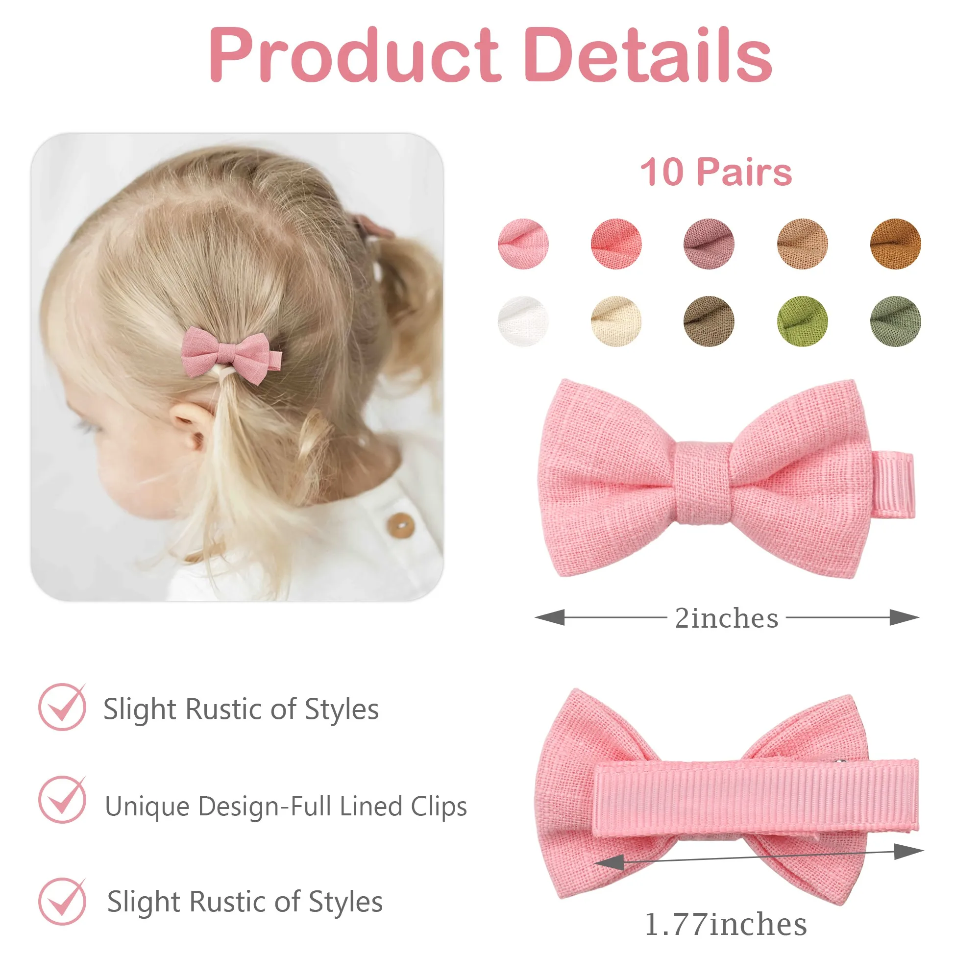 Les bébés cherchent juste pour vous Contenu de l'emballage : vous recevrez 6 couleurs unies (2 pour chaque couleur). Les fleurs sont d'environ 1,77 pouces de large, et les clips sont 1,38 pouces de long. Les pinces de cheveux pour bébé fille sont de 6 couleurs et 12 pièces. Les pinces à cheveux pour enfants sont faciles à fermer et à exclure, parfaites pour les cheveux fins des nourrissons, des tout-petits et des petites filles La taille des barrettes à cheveux pour bébé mesure 4 cm de long et 4 cm de large. Barrette Bebe Anti Glisse Coffret Cadeau Barrettes Lot De 18 Barrettes Cheveux Fille - Accessoires Coiffure Mignons Avec Boîte Cadeau - Étoiles, Fleurs, Couronnes Barrette Cheveux Bebe Fille Barrettes Cheveux Bébé Lot de 5 barrettes 3 fleurs Roodoudou - Le petit Souk Parfait pour habiller les cheveux des nourrissons, des tout-petits et des petites filles. Le meilleur bang pour votre buck Les barrettes à cheveux pour bébé sont absolument adorables et idéales pour les accessoires et la décoration de cheveux des tout-petits Cadeau idéal : les jolies épingles à cheveux sont parfaites pour être de magnifiques cadeaux pour les filles, les tout-petits, les enfants et les adolescents pour un anniversaire, la fête des enfants, Thanksgiving, l'obtention d'un diplôme, Noël, le Nouvel An et tout autre jour spécial Attaché à des clips d'alligator entièrement doublés de ruban, afin qu'ils ne tirent pas les cheveux de votre fille. Pour toutes les occasions : les barrettes à cheveux avec fleurs sont idéales pour le retour à l'école, les accessoires photo de bébé, les fêtes prénatales, la photographie ou pour porter au quotidien. Vous êtes sûr de trouver un clip floral qui ira avec toutes vos jolies tenues de filles. Cridoz Lot de 12 barrettes à cheveux en résine acrylique pour femme136... Large application : les pinces à cheveux pour enfants sont adaptées aux cheveux bouclés, aux cheveux courts, aux cheveux épais, aux cheveux droits ainsi qu'aux sports et aux jeux. Que ce soit pour un événement spécial ou un look quotidien, ces accessoires pour cheveux offrent la touche finale parfaite Bon choix pour les queues de porc, les bangs, les queues de cheval, ou simplement placé sur le côté de la tête.