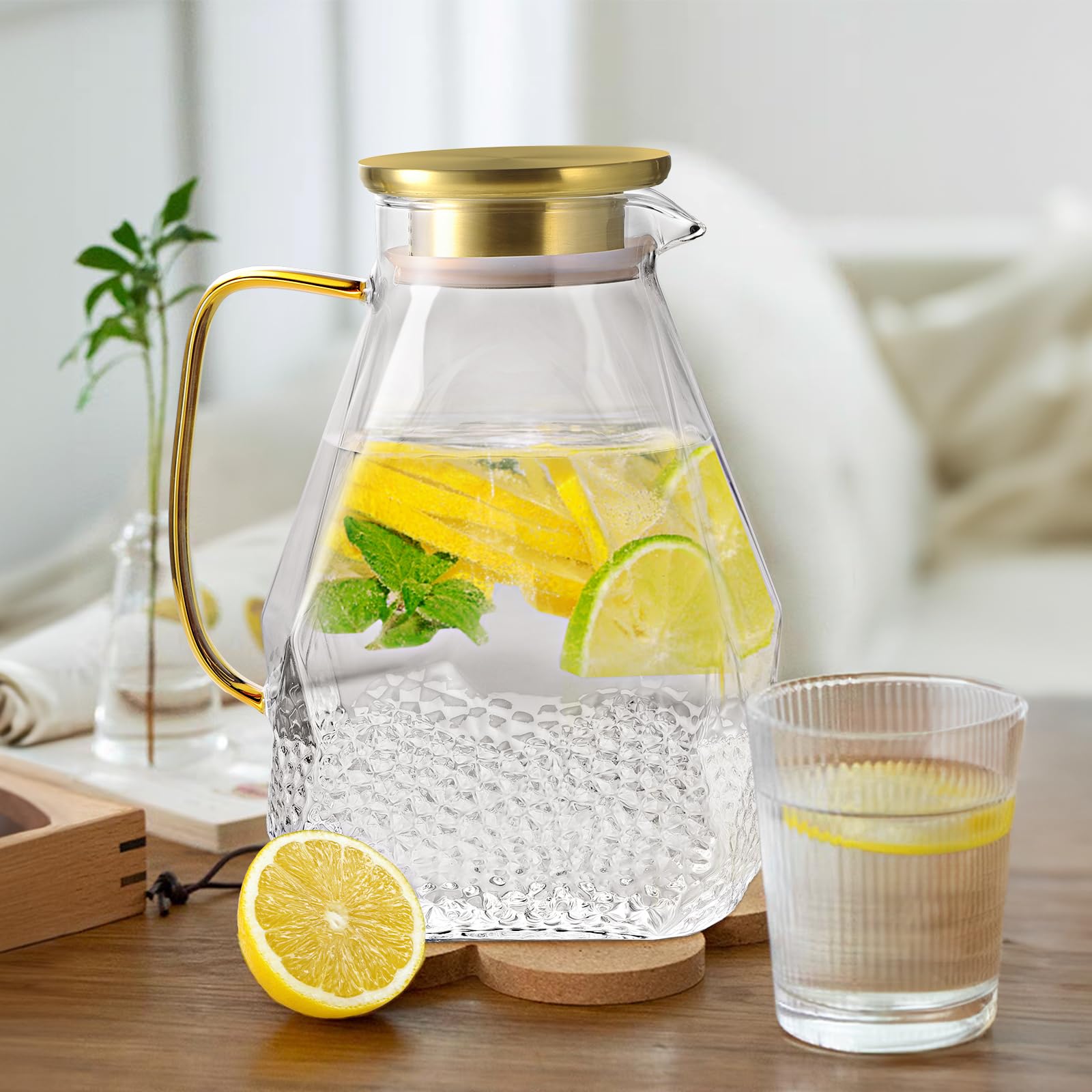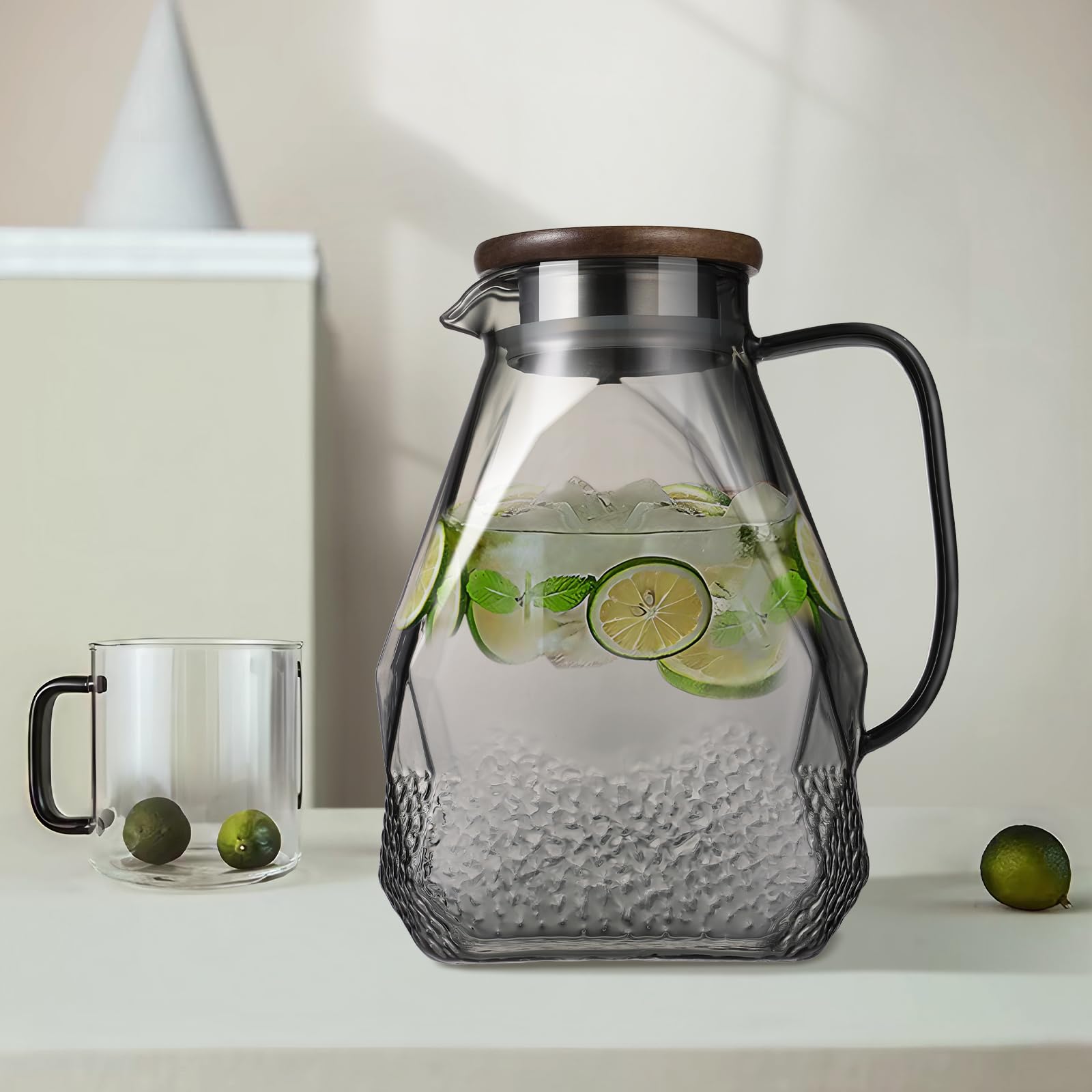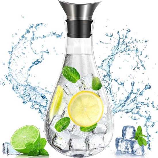 La carafe est livrée avec une brosse de nettoyage qui peut nettoyer l'intérieur., Un cadeau parfait. ecooe Carafe en verre de 1,8 l pour porte de réfrigérateur, carafe en Forme simple et élégante : une bouteille en forme de goutte apporte une beauté artistique, un récipient parfait et une décoration à votre table. Pichet Eau Verre 1,8L Avec Couvercle Carafe En Verres 18 Litres - Idéale Pour L'eau, Le Vin, Le Café Carafe Design Simple Le verre borosilicate de qualité supérieure ne contient pas de substances dangereuses pour la santé qui permettent un stockage et une consommation de boissons en toute sécurité., Facile à laver. Le design simple mais attrayant fait de la carafe un ajout unique à la maison et complète tout type de décoration. Ecooe Carafe en verre 1500 l (pleine capacité) carafe en verre en... Parfait comme cadeau : livré avec une élégante boîte cadeau et une brosse de nettoyage, cadeaux idéaux pour les amis et la famille pour un anniversaire, Noël ou toute autre occasion. Conseils pour la manipulation du verre Toutes les verreries doivent être manipulées avec soin. Parfaitement adapté à la porte du réfrigérateur : le pichet en verre a un design plat avec une largeur de 9 cm et une hauteur de 22,5 cm. · Matériau de haute... C'est vraiment un cadeau idéal pour les mariages, les pendaisons de crémaillère, les anniversaires et plus encore. En plus de la carafe elle-même, une boîte créative et une carte sont également proposées. Bien que la carafe passe au lave-vaisselle, un nettoyage manuel est recommandé. Garantie : Carafe ecooe de 1,8 l avec boîte cadeau et brosse de nettoyage, notre garantie sans souci de 18 mois et notre service client amical., Matériau sûr. Il n'est pas recommandé de retirer le silicone pendant l'utilisation et le lavage.