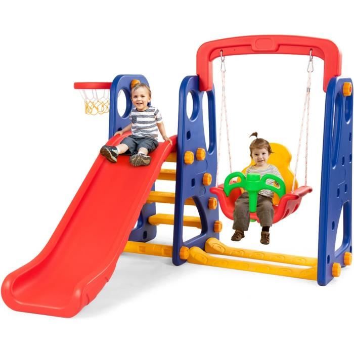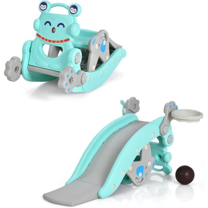 BONS POINTS: Divertissement avec panier de basket, toboggan, échelle d'escalade et jeu de lancer d'anneaux Design sécurisé avec échelle d'escalade semi-fermée et rampes surélevées Toboggan prolongé avec zone de coussin assure des atterrissages en douceur Design mignon de baleine conquiert les cœurs et l'attention des petits enfants Toboggan pliable permet un rangement facile et compact Construction triangulaire offre une stabilité robuste pour un jeu dynamique Protection anti-renversement offre une sécurité supplémentaire INFOS SPÉCIFIQUES: Couleur : Bleu Matériaux : HDPE, PP Dimensions dépliées : 150 x 70 x 66 cm (L x l x H) Dimensions pliées : 92 x 39 x 105 cm (L x l x H) Taille de chaque marche : 32 x 11,5 x 14 cm (L x l x H) Taille du toboggan : 128 x 28 cm (L x l) Diamètre du panier de basket : 18 cm Poids net : 6 kg Capacité de charge : 70 kg Âge approprié : à partir de 3 ans CE QUI VOUS RECEVREZ: 1 × Toboggan pour enfants 1 × Basketball 1 × Pompe à air 3 × Anneaux 1 × Guide d'utilisation Avec le ballon de basket inclus, la pompe à air et 3 anneaux, votre enfant sera attiré dans un plaisir de jeu excitant et varié. Son design efficace en fait un choix parfait pour un espace de vie ordonné et économe en espace. Pratique et économe en espace, le toboggan se plie facilement et se range après le jeu. GOPLUS 4 en 1 Jeux d'Escalade, Échelle Grimper Toboggan Ajustable en Amusement et joie sans fin: Ce 4 en 1 toboggan enfant offre 4 fonctionnalités ludiques : une échelle d'escalade, un toboggan lisse, un panier de basket et un jeu de lancer d'anneaux. Plongez dans une multitude d'activités captivantes qui raviront et divertiront votre enfant. Toboggan Pliable pour Tout-Petits Toboggan pour Bébé avec Panier de Basket Jeu de Lancer d'Anneaux Ballon Pompe Bleu. Prix 63,99 € TVA incluse Prix Habituel... Pour prolonger sa durée de vie, il doit être protégé d'une exposition prolongée aux conditions météorologiques extrêmes comme le soleil direct, le vent et la pluie. Ce set de jeu polyvalent est équipé d'une échelle d'escalade, d'un toboggan, d'un panier de basket et d'un jeu de lancer d'anneaux, incluant un ballon de basket, une pompe à air et des anneaux. La construction inclut un dispositif anti-basculant qui assure une sécurité stable même sur des surfaces inégales. 4 En 1 Pliable GOPLUS Toboggan Et Balançoire 6 En 1 Pour Enfants 18 Mois+,avec Panier De Basket&Football&Golf,Escalade Aire De Jeu,Orange - Jeux - Jouets Toboggan Enfant Amusement et joie sans fin: Ce 4 en 1 toboggan enfant offre 4 fonctionnalités ludiques : une échelle d'escalade, un toboggan lisse, un panier de basket et... Utilisation flexible: Fabriqué en matériau HDPE résistant à l'eau, ce toboggan enfant pliable peut être installé aussi bien à l'intérieur qu'à l'extérieur.