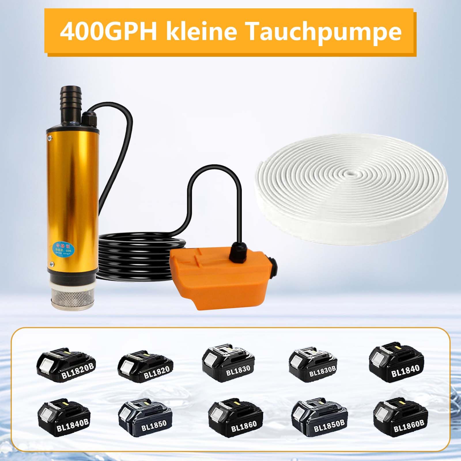 Pompes à eau Mellif, compatibles avec les batteries Dewalt Pompe à eau submersible sans fil : Pompe de refoulement submersible Mellif Sortie 3/4 (environ 1,9 cm) et filtre intégré : La sortie 3/4 (environ 1,9 cm) peut être facilement connectée à un tuyau d'arrosage standard, assurant un pompage pratique. pour vos besoins Pompe à Moteur Sans Balais Mellif Pompe Submersible Sans Fil Pour Batterie Makita 18 V, Pompe à Eau Sans Fil, Débit 1800 L/h, Hauteur De Refoulement Maximale 4 M, 1,75 Bar, Avec Tuyau D'eau, Interrupteur Rotatif Pour Pompe Batterie Bosch 18v Il suffit d'insérer une batterie Bosch Professional 18 V et de pomper l'eau sans effort (sans batterie) Débit réglable sur 3 niveaux (1817 / 2271 / 2725 l/h) - Vous pouvez adapter la quantité d'eau de manière optimale à différentes tâches - de l'arrosage en douceur des plantes sensibles à la vidange rapide des grands barils de pluie ou des étangs Mellif Compresseur sans fil pour batterie Makita 18 V, compresseur électrique de voiture-sans... Avec un débit allant jusqu'à 2725 litres par heure et une hauteur de refoulement maximale de 8 mètres, la pompe à eau sans fil est idéale pour l'irrigation, le pompage de l'eau des citernes de pluie, ainsi que pour d'autres applications de jardin et domestiques La pompe de jardin sans fil peut être utilisée directement dans un seau, un tonneau ou un étang. Si vous avez des questions ou des problèmes, veuillez nous contacter d'abord – nous serons heureux de vous aider Grâce au raccord standard intégré de 3,5 cm (avec tuyau), la pompe à eau peut être raccordée rapidement et facilement à la plupart des tuyaux d'arrosage