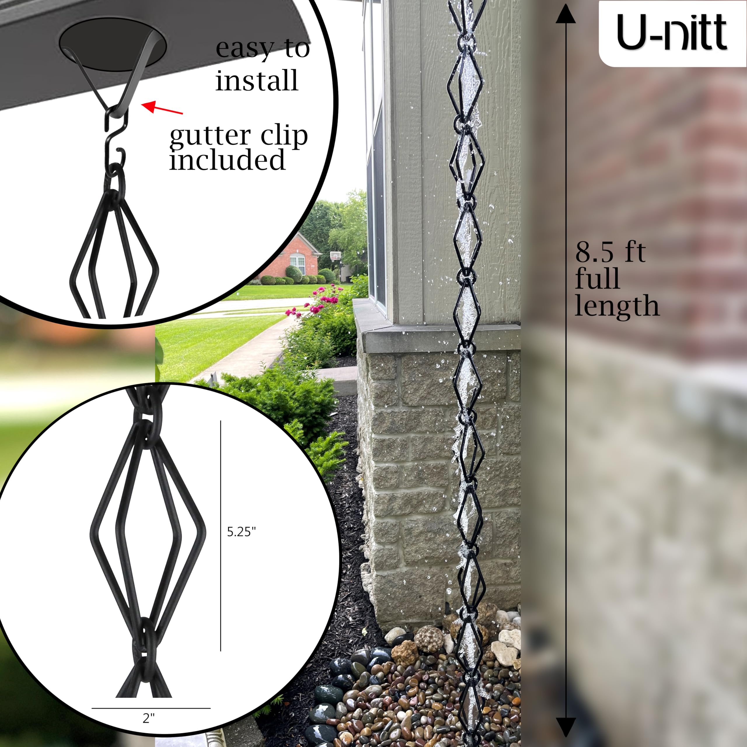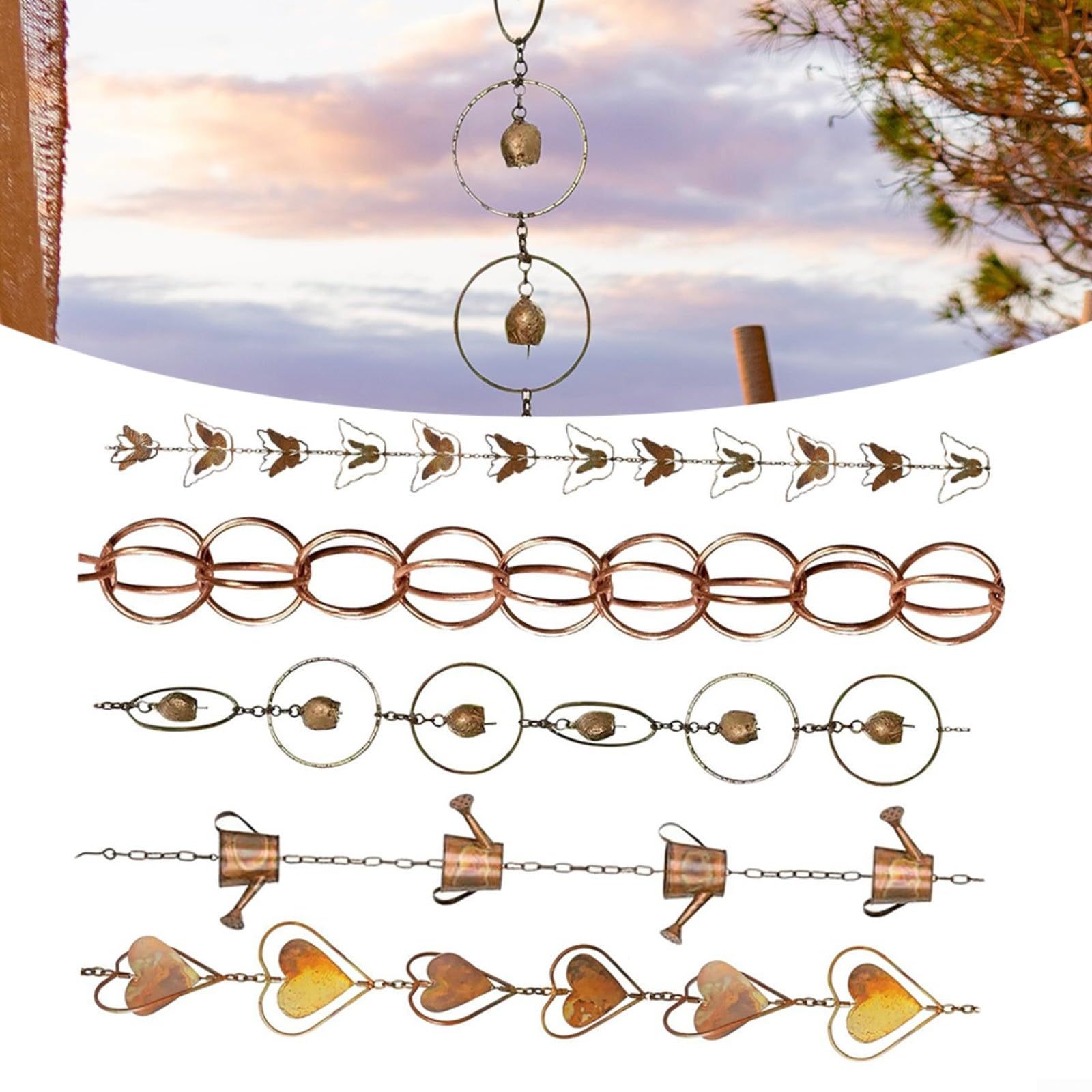 Contenu : 1 chaîne de pluie. et matériau]: Fabriquée en matériau en fer avec une surface en cuivre brillant, cette chaîne de pluie est conçue pour résister à diverses conditions... 【et matériau】: Fabriquée en matériau en fer avec une surface en cuivre brillant, cette chaîne de pluie est conçue pour résister à diverses conditions météorologiques. Caractéristiques techniques : *Nom de la pièce : chaînes de pluie., *Matériau : métal. Chaîne De Drainage Pour Gouttière Monarch Rain Chains 18108 Chaîne De Pluie Cylindrique En Aluminium, Longueur De 2,6 M, Tuyau De Descente De Rechange Pour Gouttières, Revêtement En Poudre Noire Chaine De Pluie Elle remplit non seulement un but fonctionnel, mais ajoute également une touche décorative à votre espace extérieur. *Matériau de qualité : la chaîne de pluie est fabriquée en fer avec un ton de cuivre brillant et complète tout type de décoration extérieure, car elle est résistante à l'usure et durable. 【Conception créative et fonctionnelle】 : cette chaîne de pluie extérieure connecte le toit au sol de manière créative et permet à l'eau de s'écouler dans la tasse et le sol via la chaîne. Il est résistant à l'usure, ce qui en fait un ajout durable à votre décoration extérieure. 【Installation facile】: La chaîne de pluie en métal est livrée avec un crochet de suspension, ce qui permet une installation facile à l'extérieur. *Large utilisation : la chaîne de pluie décorative avec carillon à vent est idéale pour les toits, les auvents, les hangars, les pavillons, les abris de jardin, etc. *Dimensions : environ Longueur : 1 m., *Couleur : voir photo. Chaîne de pluie PVC pour descente de gouttière ! | Gouttière Expert L'installation extérieure est très simple et ne nécessite aucun outil pour accrocher le crochet. Accrochez le crochet sur le bassin ou le récipient souhaité et profitez du débit d'eau captivant. Mobile Birds Rain Chain for Gutters - Dark Bronze Garden Drain Décor