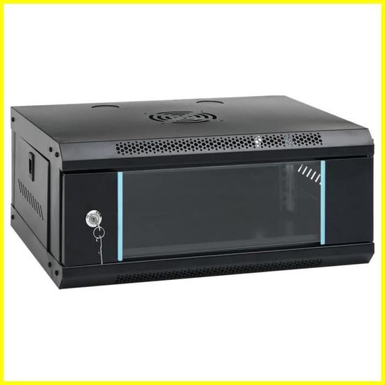 Matériau : acier laminé à froid, verre Dimensions intérieures : 45 x 40 x 40 cm (L x l x H) Comprend la serrure et la clé Facile à entretenir : les panneaux latéraux amovibles facilitent l'entretien des accessoires de réseau. Armoire réseau 19 pouces 9U coffret mural noir ⚙️, 84,90 Dimensions extérieures : 53 x 40 x 45 cm (L x l x H) Elle est compatible avec l'équipement standard de 19 pouces. Coffret 19 9U Armoire de réseau mural fixe profondeur... Le ventilateur n'est pas inclus dans la livraison Structure solide : cette armoire de données, dotée d'une structure solide, est fabriquée en acier laminé à froid de première qualité, ce qui la rend résistante et durable à utiliser. Degré de protection : IP20 Armoire Rack 19 53x40x45 Cm Acier Coffret De Réseau Mural 9U 19" IP20 53x40x45 Cm,Systèmes De Armoire Rack 19 Pouces Cette armoire rack 9U est parfaite pour organiser votre équipement réseau ! Conçue pour routeurs, modems fibre ou serveurs, elle offre un rangement sécurisé... Porte avant en verre trempé verrouillable