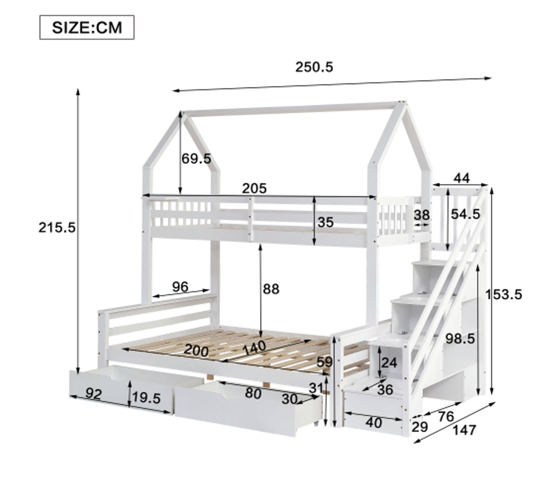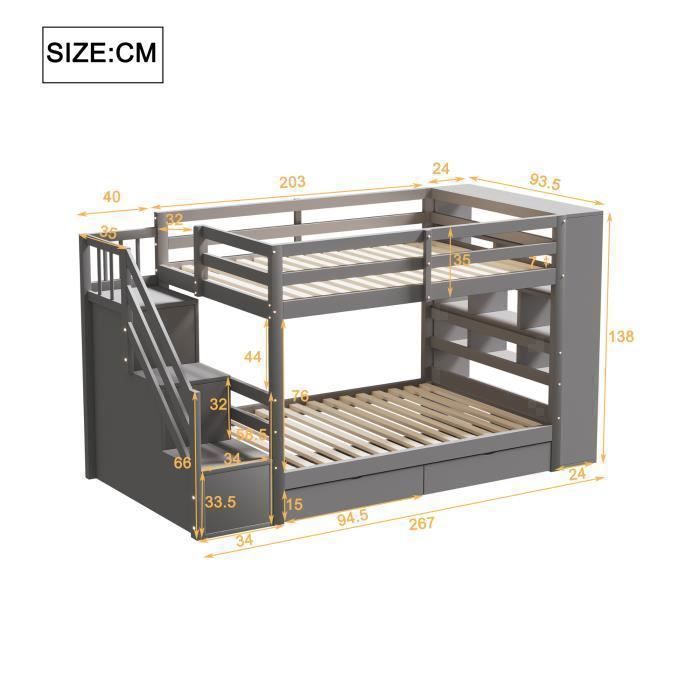 Découvrez le lit superposé enfant 90x200 cm, alliant design enchanteur et fonctionnalité. Des tiroirs mobiles complètent l’ensemble du lit cabane, facilitant le tri et l’accès aux affaires. ✅Veuillez noter que la couleur du produit peut varier en fonction de la source lumineuse et de l'angle de vue. Parfait pour toute chambre, il séduit par son style ludique et pratique. CONFORT ET SUPPORT OPTIMAL POUR BIEN DORMIR : Le lit superposé enfant 90x200cm dispose d’un sommier à lattes solide qui assure un soutien ferme et régulier du matelas. Ce lit superposé garde tout à portée de main sans encombrer l’espace. Lit Enfant Escalier Rangement Bois Blanc Lit Superposé 90x200cm, Avec 1xsommier à Lattes Et Echelle Avec Barre De Lit Antichute En Pin Sans Matelas Blanc 84307248 Lit Cabane Enfant Lit Superposé Cabane Enfant 90x200 - Structure Bois Massif Avec Echelle Tiroirs Et Protection Sommier Inclus Sans Matelas 90366988 Veuillez patienter et vérifier que tous les accessoires sont présents avant de procéder à l'assemblage. Avec ses fenêtres, son toit et son escalier intégré doté de rangements, ce lit cabane offre un espace de jeu et de sommeil unique. MONTAGE SIMPLE ET FLUIDE : Grâce à un guide détaillé et à des pièces clairement identifiées, le montage du lit enfant 90x200 est rapide et intuitif. Le lit superposé est une solution astucieuse pour optimiser l’espace dans une chambre. Que ce soit pour les enfants, les adolescents ou même les invités, il combine praticité et design Il est possible que ces 5 colis n'arrivent pas le même jour. Installer ce lit superposé devient une étape agréable vers l’aménagement d’une chambre fonctionnelle et chaleureuse. Ce lit double allie robustesse et élégance naturelle, garantissant un usage prolongé tout en résistant aux aléas du quotidien dans la chambre d’enfant. Le solide sommier à lattes offre un soutien solide, tandis que l'escalier de sécurité permet à votre enfant de monter et de descendre facilement et en toute... Chaque étape est conçue pour se dérouler sans difficulté. Il transforme la chambre en un refuge accueillant, idéal pour stimuler l’imagination. ✅Nos produits sont accompagnés d'instructions d'assemblage claires qui vous aideront à les assembler rapidement.