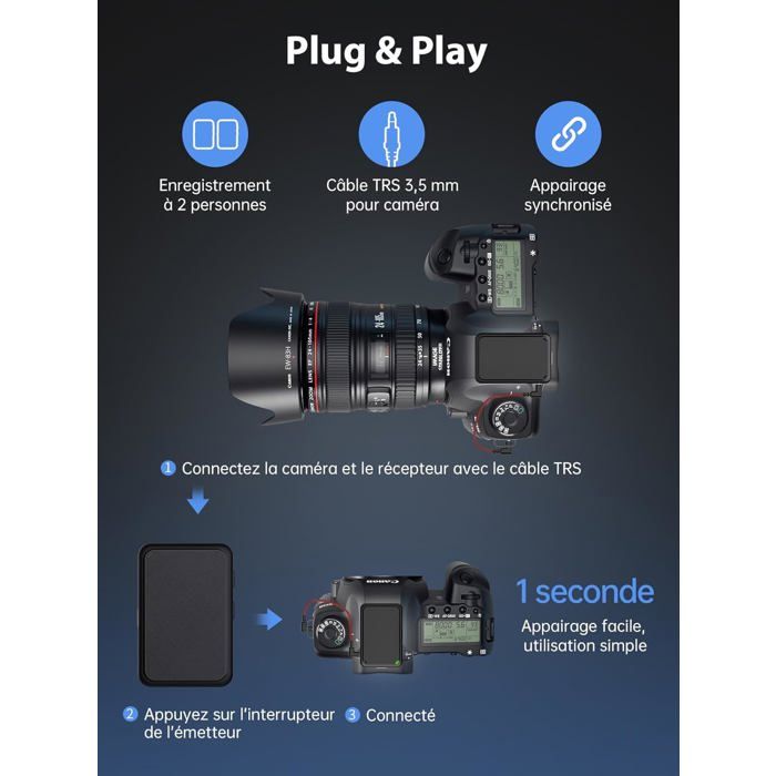 Micro Cravate Sans Fil - Gimpro - MB1M - Plug&Play - 3 Modes de Le microphone peut rester en veille jusqu'à 8 heures avec une charge complète. Microphone Smartphone Gimpro MS1X (C) 2.4GHz[Type-C&USB] Microphone Tie For Mobile Phone Plug Micro Enfant ✔【Ultra-Long Temps de Veille】Le microphone peut rester en veille jusqu'à 8 heures avec une charge complète. Mcrophone cravate sans fl professonnel pour smartphone, mcrophone... icro Cravate Sans Fil,Gipro C1X(C) 2.4GHz[TYPE C&USB]2TX&1RX... ✔【Embedded Package】Tous les produits sont parfaitement intégrés dans un emballage en mousse épaisse selon la forme du produit. Idéal pour le live-streaming en extérieur, l'interview, l'enregistrement YouTube, la leçon en ligne, etc Pour assurer la sécurité du produit pendant le transportet vous livrer un produit neuf parfait. ✔【Plug-And-Play Design】Nous vous fournissons l'adaptateur TYPE C à USB., Avec 2TX et 1RX. ✔【Microphone Omnidirectionnel】Gimpro MS1(C) série de micro pour smartphone adopte une tête de micro à haute sensibilité avec 360°pickup pattern pour recueillir des sons avec des détails riches dans une réponse rapide, tandis que la tête de micro enveloppé par pop vent muff haute densité aider à réduire les interférences à l'environnement Le microphone de smartphone sans fil 2,4Ghz Gimpro MS1X(C) fournit une transmission stable, fluide et résistante aux interférences jusqu'à 394ft/120m (LOS)
