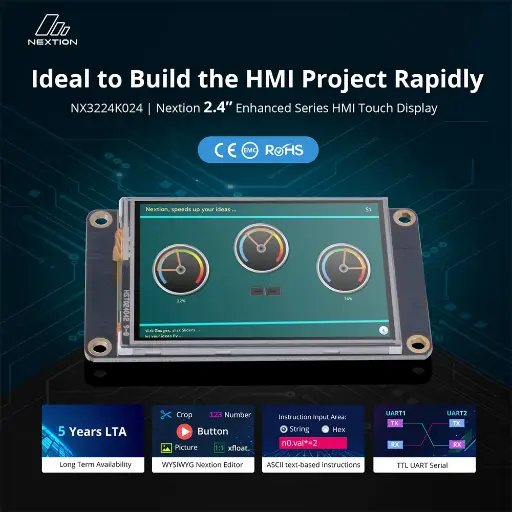 Utilisez le port USB et le câble 4P inclus dans la livraison., 2., Vous pouvez utiliser un adaptateur USB vers TTL pour vous connecter à l'écran. Nextion est principalement utilisé dans le secteur de l'IoT ou de l'électronique grand public. Nextion Enhanced Avec RTC GPIO Mémoire Flash DIYmalls Nextion Enhanced Display 2,8" Écran Tactile Résistant 5V TFT LCD Pour Arduino Raspberry Pi (NX3224K028 Serial Communication Nextion – panneau d'affichage de Module LCD, 2... – Grandado En guise de solution à cette situation, l'éditeur Nextion dispose de composants en vrac tels que des boutons, du texte, une barre de progression, un curseur, un tableau de bord, etc. Carte Micro TF/SD 32G (format de fichier FAT32) Espace de stockage des données flash : 16 M EEPROM : 1024 octets RAM : 3584 octets tampon de commande : 1024 octets couleur : 65K ( 65536) couleurs résolution : 320 x 240 pixels luminosité réglable : 0 ~ 180 nit - cet intervalle de réglage est de 1% Spécification : Zone d'affichage : 48,96 mm (L ) × 36,72 mm (L) Taille de mise en page : 74,4 (L) × 42,72 (L) × 5,8 (H) Type de toucher : Résistif Rétroéclairage : LED Durée de vie du rétroéclairage (moyenne) : 30 000 heures Alimentation recommandée : 5V 500mA DC La série Nextion Enhanced est plus puissante que la série Nextion Basic. Nextion est une solution d'interface homme-machine (IHM) transparente qui fournit une interface de contrôle et de visualisation entre une personne et un processus, une machine, une application ou un appareil. L'écran suivant montre la série K (série étendue). pour enrichir la conception de l'interface et le glisser-déposer. Pour d'autres documents : Lien vers le document : https://www., youtube. Il peut y avoir une erreur dans le fichier Nextion HMI. com/public/JEVwGg/Nextion Editor. Par rapport à la version de base 2.8, Nextion Enhanced 2.8 offre de nouvelles fonctionnalités : prise en charge du RTC intégré, stockage des données en mémoire flash, GPIO, capacité de mémoire flash plus importante et CPU plus rapide Avec EEPROM de 1024 octets, RAM de 3584 octets, mémoire de données flash de 16 Mo, résolution de 320 × 240, zone visible : 48,96 mm (L) × 36,72 mm (L), taille de mise en page : 74,4 (L) × 42,72 (L) × 5,8 ( H) ., Couleur : 65K (65536) couleurs. Veuillez le livrer avec une pile CR1220 (non incluse) et connecter un câble 4p. com/results?search_query=Nextion+HMI Nextion-Editor: https:/ /www., adrive. Aihasd English 2.4" TFT 320x240 Nextion HMI USART UART écran Tactile