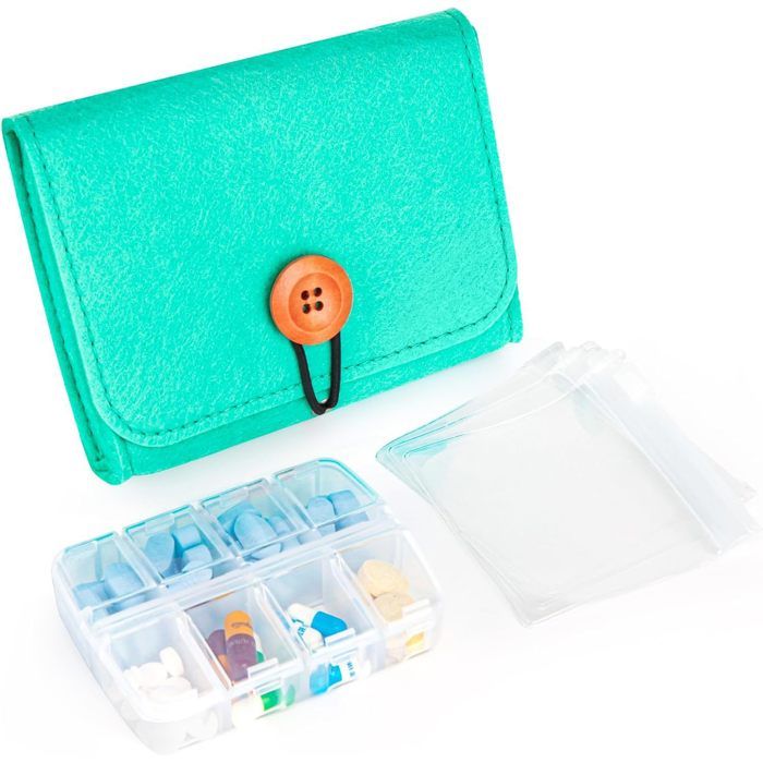 Sac De Voyage Médical Lot De 2 Boîtes à Pilules Quotidiennes Portables - Organisateur De Sac Médicaments Voyage Généralement, les utilisateurs de médicaments fragiles ont besoin de plusieurs solutions pour différents types de voyages. Mais la solution la plus couramment utilisée pour voyager avec des médicaments fragiles est le sac isotherme Trousse de premiers soins à domicile, grande capacité, sac de rangement Étui de rangement amusant pour médicaments : avec 21,6 x 15,2 x 0,38 cm, cet organiseur de médicaments léger peut se glisser dans des sacs, sacs à dos, sacs à main, bagages sans encombrement, plus qu'une pochette de rangement, c'est un compagnon attentionné pour rester en bonne santé à chaque voyage, pochette de rangement pour les personnes allergiques, organisateur de pilules portable pour les patients souffrant d'arthrite, organisateur de médicaments de voyage pour les voyageurs en solo Vert-Boîte de rangement pour médicaments 9 grilles, étuis à pilules de... Sacs à pilules portables en toile avec fermeture éclair pour les voyages : cette trousse de voyage pour médicaments est votre pochette indispensable pour organiser les médicaments, les fournitures de premiers secours, les cotons-tiges, la gaze, les bandages, notre sangle anti-perte le maintient en main, toujours un sac à médicaments robuste pour les aventures en plein air, petite pochette élégante pour la famille, pilulier compact pour les voyageurs d'affaires Couleur : conforme à l'image. Contenu du paquet : 1 organiseur de sac médical. Cette pochette de rangement de voyage pour médicaments, médicaments, fournitures médicales, premiers secours, cotons-tiges, gaze, bandages peut être utilisée comme trousse de maquillage, sac de voyage, pochette de rangement pour câble de voyage, sac cadeau médical, sac de médicaments de voyage, sac médical de voyage Parfait comme cadeau de Noël de remise de diplôme pour fils, sœur, meilleure amie, cadeau de Père Noël secret pour les collègues de travail, nièce, neveu, meilleur cadeau de remise de diplôme pour votre meilleure amie, pour ma meilleure amie le jour de son mariage, cadeau de Noël, d'anniversaire, d'anniversaire pour meilleure amie, cousine, fille Caractéristiques : Matériau : toile., Dimensions : 22 x 18 cm.