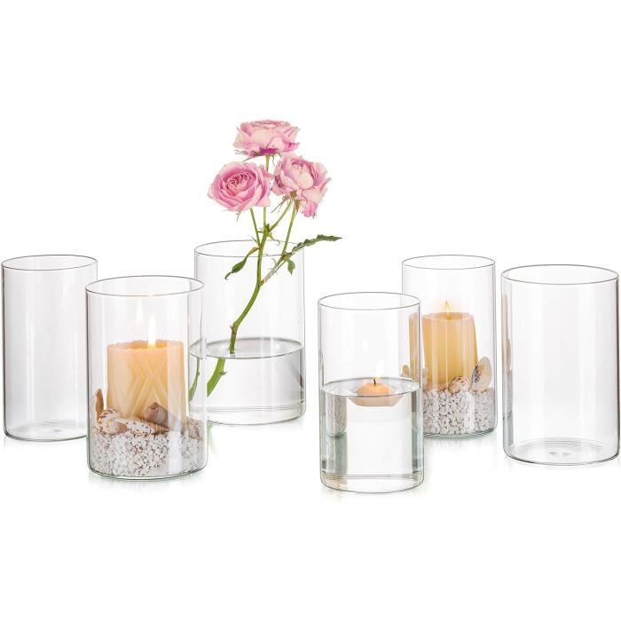 Verre Transparent Coupe-vent Hewory Lot De 2 Bougeoirs En Verre Hurricane Avec Couvercle Cylindres Verre Coupe-vent Pour Bougies MrMrKura Lot de 2 bougeoirs en fil de métal - Bougeoirs en verre doré Hauteur de la base : 5,5 cm, largeur : 6,8 cm. Diamètre du trou : 2,2 cm, convient aux bougies coniques de 2,2 cm. Vous recevrez 2 bougeoirs ouragan coniques... Les bords lisses évitent les fissures et le bougeoir en verre met en valeur la lumière douce de la bougie. Convient aux bougies coniques et aux bougies cylindriques, offrant des options décoratives flexibles et un excellent rapport qualité-prix grâce au support bougie. Design sûr et coupe-vent : Équipé d’un cylindre de verre amovible qui protège la flamme du vent et empêche l’extinction. Design classique et minimaliste : Fabriqué en cylindre de verre transparent et épais sans fond, ce bougeoir verre combine élégance traditionnelle et style moderne, parfait pour divers environnements domestiques et événements, créant une ambiance chaleureuse et romantique. Les Bougeoirs en Verre sont idéaux pour une utilisation en extérieur. L’emballage a été amélioré à plusieurs reprises pour garantir la sécurité pendant le transport. Ces élégants Bougeoirs Transparents et Porte-Bougies en Verre apportent une touche raffinée et créent une atmosphère confortable et accueillante. Aspect transparent, ce qui peut augmenter l'atmosphre chaleureuse de la flamme de la bougie. Caractristiques - Matriau : verre borosilicat - Il est fabriqu en matriau haut de gamme et fin, qui peut rsister une utilisation durable. - La conception de structure simple et transparente est idale pour une dcoration crative dans une atmosphre romantique