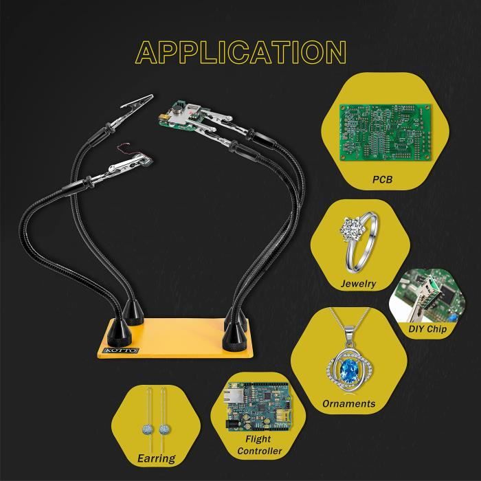 Pince à Souder KOTTO Troisieme Main Pour Fer à Souder, 3eme Main Soudure, 2 Bras Métalliques Flexibles, Avec Base Lestée, Pour Bijoux, Atelier - Beaux-Arts Et Loisirs Créatifs Pince Troisième Main Soudage Entreprise Soudure TIG MIG & Chaudronnerie Montpellierq - Midi Découpe Améliorez vos travaux de soudure, d'assemblage, de réparation ou de bricolage avec le kit de soudure troisième main Lytool. Doté d'une base robuste en acier... Un accessoire incontournable parmi les fournitures de soudage, il offre une application sans effort grâce à son mécanisme de serrage efficace pour aider les utilisateurs à obtenir des résultats précis. Caractéristiques: Nom du produit: pince de soudage par fil Matériel: Abs Taille du produit: (marqué comme indiqué) Poids: environ 35 g Diamètre de fil applicable: peut serrer les fils avec un diamètre de 0,3 à 8 mm Liste de colisage: 1 * porte-fils de soudage (couleurs ) Note: En raison de différents paramètres d'éclairage et d'écran, la couleur de l'élément peut être légèrement différente de l'image. En raison de différentes mesures manuelles, veuillez permettre une différence de taille de 1 à 2 cm. Conçu pour sa portabilité et sa fonctionnalité, cet outil de fixation de soudage prend en charge plusieurs utilisations comme la soudure MIG, TIG, la réparation de circuits imprimés et l'assemblage de faisceaux de câbles. Performances de réparation lisse: les textures entrelacées et les composants d'amortissement élastique permettent des réparations lisses adaptables aux besoins de travail tout en offrant des ajustements multi-angles flexibles pour plus de commodité Flux de travail de soudage modernisé: avec une fonction assistée par le ressort, l'outil facilite l'utilisation à une main, un confort amélioré et des performances de soudage efficaces tout en simplifiant les étapes d'opération complexes sans effort sans effort Précision dans chaque tâche: cet outil de soudage fournit un serrage stable et s'adapte à plusieurs positions, détenant efficacement des tailles de fil diverses pour éviter les problèmes de déplacement et obtenir un positionnement précis pour chaque application Fonctionnalité améliorée : travaillez avec facilité en utilisant le clip crocodile en silicone de notre station de soudure de troisième main et la rotation à 360 degrés, permettant une résistance maximale à la chaleur et un fonctionnement sans effort