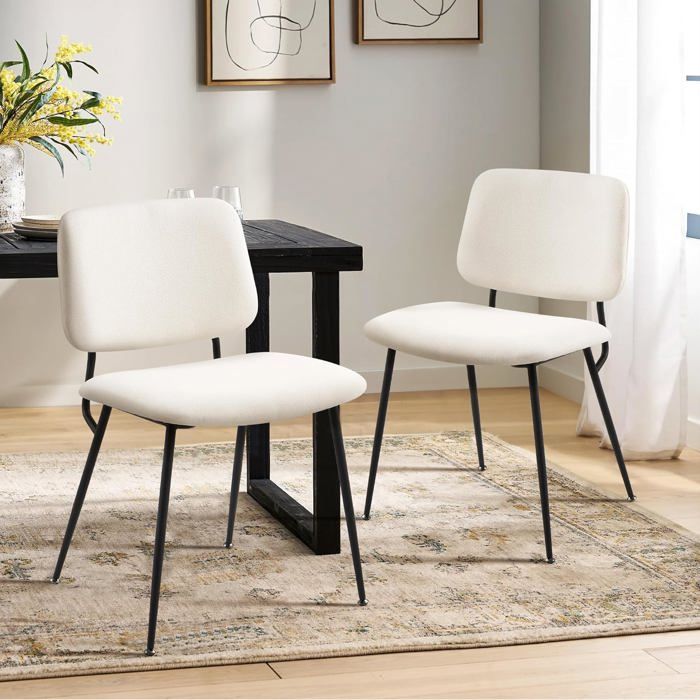 Chaise avec accoudoirs bouclette pieds bois Maxine - Bouclette EXCELLENT CONFORT: Le dossier de cette chaise de salle à manger est conçu dans une forme carré et rétro pour s'adapter bien à la courbure de la colonne vertébrale humaine. Lot De 6 Chaise Salle à Manger NAFORT Lot De 6/4/2 Chaises De Salle à Manger Rembourrées En Tissu Lot Chaises Dossier Carré DESIGN UNIQUE - Les chaises de salle à manger en lin de style moderne du milieu du siècle s'intègrent bien dans les intérieurs contemporains, le minimalisme met en valeur la présence d'autres décorations d'intérieur. Lot De 6 Chaises De Salle à Manger.Chaise Cuisine En Velours Rembourrée.Pieds. SOLDES. WOLTU. Lot De 6 Chaises De Salle à Manger.Chaise .. 499,99 € HT399,99... Découvrez nos lots de 6 chaises aux styles, coloris et matières si variés ! Côté matière des chaises en tissu, velours, simili, bois, métal ou encore PVC. Côté... Elles peuvent être utilisées comme chaises de salle à manger, chaises de toilette pour la chambre, chaises de lecture pour le patio, chaises d'appoint pour le couloir ou chaises de bureau dans le salon et le bureau. Les bords profilés et le rembourrage en coton épais de cette grande chaise de salle à manger vous assureront, vous et vos proches, un confort optimal même lorsque vous êtes avec des invités pendant des heures. Parfait pour la salle à manger, la cuisine, le jardin, le salon, la chambre, le café ou la ferme. Design Naturel - Cette chaise de salle à manger est fabriquée en bois massif, un matériau solide, stable et résistant. TRÈS POLYVALENT: Qu'elles soient utilisées ensemble dans une salle à manger ou avec la table de la cuisine ou dans des pièces séparées, nos chaises vous offrent plus d'options et d'harmonie. Description du produit Ckaff Lot de 2 Chaises de Salle à Manger