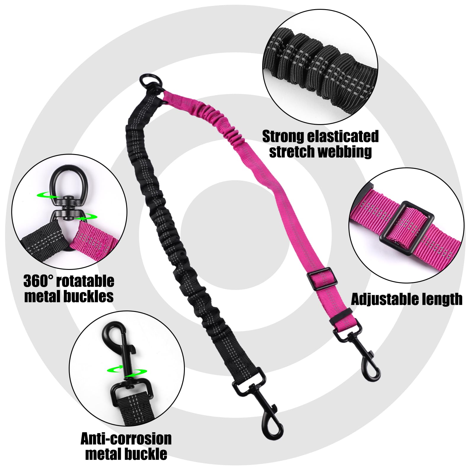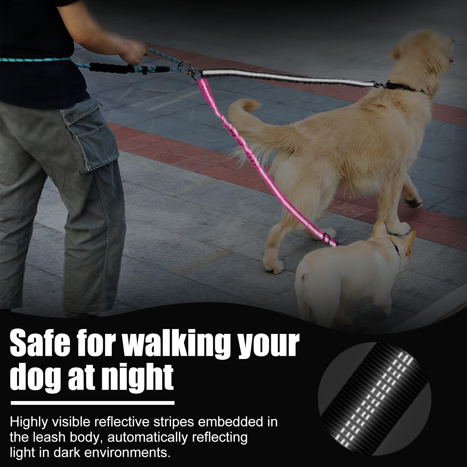 Même dans des conditions de faible luminosité, vous pouvez facilement trouver votre chien et assurer la sécurité des activités nocturnes. Laisse Double Pour 2 Chiens Laisse Pour 2 Chiens Double Réglable DtopbuyAge - Gamm Vert Accessoire Promenade Deux Chiens Les deux cordes sont contrôlées indépendamment et la longueur peut être ajustée séparément pour éviter que les chiens ne se tirent l'un l'autre ou ne se précipitent soudainement. Laisse Pour Chien Avec Double Attache Pour 2 Chiens, Fabriquée En... Contenu du paquet : 1*laisse pour 2 chiens La corde en nylon résistante à l'usure disperse la tension avec plus d'énergie, les chiens de petite et moyenne taille ou les grands chiens peuvent être utilisés en toute sécurité. Double de Chien Laisse, laisse chien enrouleur, rotation réglable à 360... Spécifications du produit : Matière : Nylon Nylon Couleur : Noir + Rose Convient aux petits, moyens et grands chiens Longueur : 45cm-65cm pour Rose, 40-85cm pour Noir. La double laisse chien adopte une corde en nylon épais + des pièces métalliques antirouille, résistantes aux morsures et aux déchirures, et ne se lasse pas de l'utiliser pendant longtemps. MATÉRIAUX DE HAUTE QUALITÉ : La laisse double adopte une corde tressée en nylon haute densité, anti-morsure et anti-rayure, résistante à la déchirure, durable et anti-mousse, les grands chiens ne sont pas faciles à briser même lorsqu'ils éclatent, sûrs et fiables. Laisse pour chien 3 m double laisse réglable pour chiens de grande et La double laisse est dotée d'une ligne réfléchissante à haute luminosité pour améliorer la visibilité dans les environnements sombres, pour plus de tranquillité d'esprit lorsque vous promenez votre chien la nuit ou les jours de pluie. SÉCURITÉ NOCTURNE : La laisse chien double attache est équipée de bandes réfléchissantes très lumineuses, clairement visibles la nuit ou dans un environnement peu éclairé pour améliorer la sécurité.