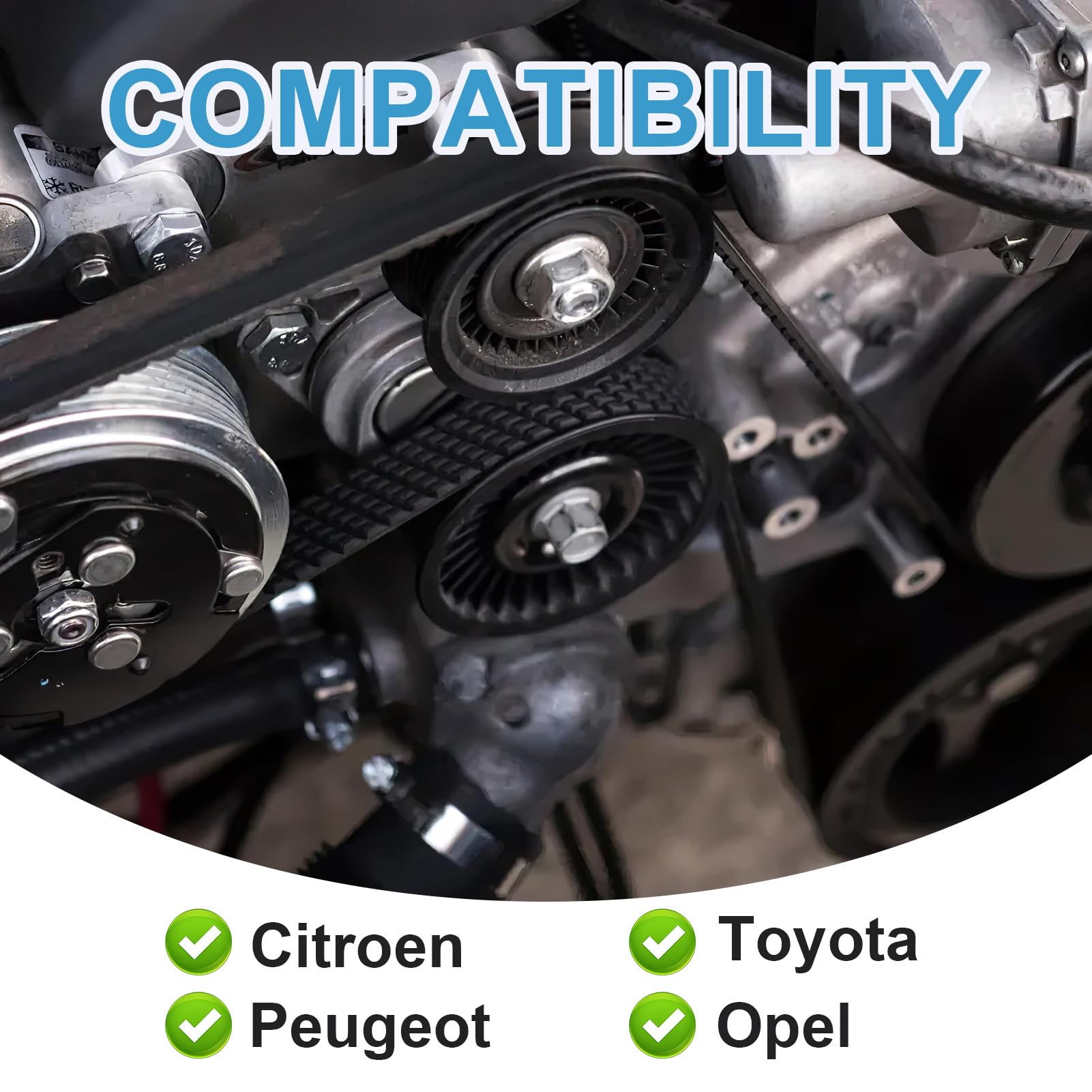 Il permet de vérifier rapidement le calage du moteur lors du démontage et de l'installation de la chaîne de distribution. Outil De Test De Courroie De Distribution Pour Puretech 1.2 Icywink Outil De Test De Courroie De Distribution Pour PureTech 1.0 Et 1.2 Citroën Peugeot Opel, Clé Jauge Pour Courroie Distribution, Jauge De Vérification De Courroie De Distribution Pour PSA Testeur Courroie Distribution PureTech 1.0 1.2 En raison du vieillissement ou de l'absence d'additifs, la structure de la courroie de distribution fonctionnant dans le bain d'huile peut se détériorer. Cet outil de test est conçu pour la précision et vous permet de vérifier rapidement et précisément l'usure des courroies moteur. Conçu de manière intuitive, il permet de vérifier l'état de la courroie HMT (EB2D), HMU (EB2D), HMP (EB2FB), HNZ (EB2DT), HNY (EB2M/ EB2DTS), HMV (EB2M), HMW (EB2), B12XE (EB2F), D12XE (EB2F), D12XE (EB22). F12, B12XHL (EB2DT), D12XHL / F12XHL (EB2ADT), B12XHT (EB2DTS), D12XHT / F12XHT (EB2ADTS). Photo 1 - moteur 1.2 puretech chaine au lieu courroie - Fiabilité 1.2... Pour les moteurs Citroën, Peugeot, Toyota, Opel et GM 1,0 et 1,2 litres Pour les moteurs et véhicules suivants : Pour Citroën 1,0 / 1,2 L : C-Elysee, C1 II, C3 III, C3 Picasso, C4 Cactus, C4 II, C4 Picasso / Grand Picasso II, DS3 / DS3 Cabrio Pour Peugeot 1,0 / 1,2 L : 108, 2008, 208, 301, 308, 3008, 508, 5008, Partner III, Partner IV Rifter (année de production à partir de 2013). Si la courroie de distribution dépasse la largeur maximale spécifiée par le fabricant, ce qui peut être vérifié avec cet outil, elle doit être remplacée. Un produit solide, fabriqué à partir de matériaux de haute qualité, pour un usage professionnel. Outil de test d'instrument de diagnostic de défaut d'outil de Les numéros d'origine sont fournis uniquement à des fins de comparaison ; il ne s'agit pas d'un outil d'origine. Conçu de manière intuitive, il permet de vérifier l'état de la courroie.