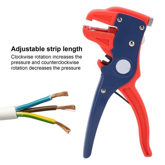 Denudeur Fil Electrique Pince à Dénuder 2 En 1, Pince à Dénuder Et Coupe-fil Automatique Pince Réglable électricien Fée Un fidèle amateur knipex pince a denuder compétition trimestre Inapproprié DEN 5-6 Pince à couper et dénuder max 6 mm de diamètre avec butée... HAUTE QUALITÉ : Les lames de la pince à dénuder sont fabriquées en MN65, ce qui permet de dénuder le fil proprement et rapidement sans endommager le cœur. Les poignées des pinces à dénuder sont en acier au carbone et en nylon renforcé pour une plus grande durabilité. MULTIFONCTIONNALITÉ : La pince à dénuder combine les fonctions de dénudage et de coupe en une seule, ce qui permet de couper rapidement une large gamme de fils, mais aussi de dénuder avec précision et proprement les fils à âme pleine et les fils multibrins, ce qui est très pratique sur le lieu de travail. Mesure manuelle, s'il vous plaît laisser 0,5-1 cm d'erreur. Avec cette pince à dénuder, vous n'avez pas besoin de transporter une pince coupante et une pince à dénuder séparées, ce qui permet d'économiser de l'espace., DESIGN AJUSTABLE : 1., Force de dénudage réglable : le bouton de réglage situé sur le dessus permet de modifier la tension de dénudage afin d'éviter qu'une tension trop forte n'endommage le noyau de cuivre du fil ; 2., Longueur de dénudage réglable : l'orifice de dénudage est équipé d'un dispositif de réglage de la longueur et d'une échelle, ce qui vous permet d'ajuster la longueur de dénudage en fonction de vos propres besoins. Cette pince à dénuder peut sans effort réaliser un dénudage rapide et précis pour répondre à vos besoins quotidiens, c'est un bon choix pour les amateurs. LARGE APPLICATION : La pince à dénuder convient à la réparation et à l'installation de toutes sortes d'appareils électriques, d'équipements mécaniques et de câbles, un cadeau parfait pour les bricoleurs et les électriciens. L'outil combine les fonctions d'une pince à dénuder et d'un coupe-fil, adapté pour dénuder des fils solides et toronnés de 10 à 24 AWG (0,2 mm² à 5,5 mm²), et est particulièrement adapté pour dénuder et couper des fils de haut-parleurs et des câbles plats plats