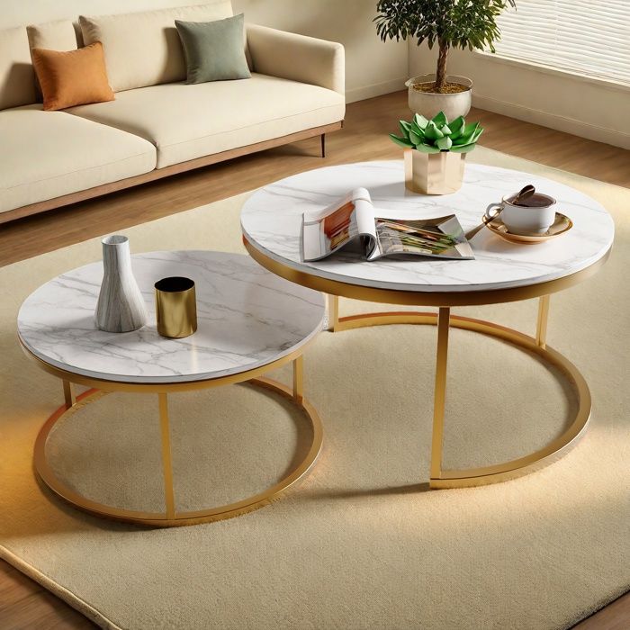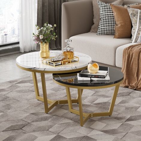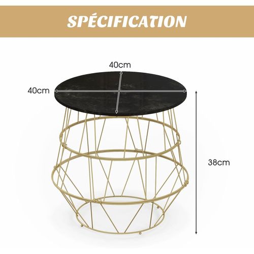 De plus, la surface lisse est facile à nettoyer, il suffit de passer un chiffon humide. Table Basse Gigogne Ronde 2 En 1 Tables Basses Gigognes Ronde Plateau En Marbre 1 Tiroir Pieds Métal 70x70x45,5+50x50x38,5cm Noir - Maison Table Basse Moderne Combinable À Propos de l'Article Laissez notre set de 2 tables basses effet marbre devenir le centre visuel élégant et fonctionnel de votre salon. Construction de qualité supérieure : cette table de 90 x 90 x 75 cm et les chaises de 96 x 42 x 56 cm sont habilement construites avec un dessus effet marbre... La manière dont les 2 tables s'unissent de la bonne manière ajoute également une touche décorative supplémentaire à votre espace. # 𝐆𝐫𝐚𝐧𝐝 𝐏𝐥𝐚𝐭𝐞𝐚𝐮 𝐝𝐞 𝐓𝐚𝐛𝐥𝐞 # Que vous ayez besoin d'exposer des services à thé, des livres ou de mettre en valeur des cadres photo ou des objets décoratifs, les 2 grands plateaux de la table basse de salon répondront à vos besoins et garderont votre espace ordonné et joli, atteignant un équilibre optimal entre décoration et praticité. Table basse gigogne en deux parties - Aspect et rangements marbre PVC noir et gris, fûts... Vous pouvez les utiliser séparément en fonction des besoins de rangement de la pièce, ou les combiner pour gagner de l'espace, ajoutant ainsi plus de possibilités à votre espace de vie. Traits Dominants 2 tables, qui peuvent être utilisées séparément ou combinées 2 grands plateaux offrant un vaste espace de rangement Finition élégante en marbre blanc et structure dorée Panneaux épais et cadre en métal offrant un soutien solide Pieds antidérapants réglables pour une stabilité accrue Coins arrondis pour éviter les chocs accidentels Peut être utilisé comme table d'entrée, table basse, table canapé, etc. La structure en métal peint en poudre pour usage intensif et les connexions métalliques renforcées offrent une plus grande résistance à la rouille et une stabilité assurée pour garantir leur durabilité dans le temps. Gymax Table Basse Ronde à 2 Niveaux avec Étagère Ouverte, Chêne # 𝟐 𝐏𝐢è𝐜𝐞𝐬 𝐩𝐨𝐮𝐫 𝐔𝐭𝐢𝐥𝐢𝐬𝐚𝐭𝐢𝐨𝐧 𝐅𝐥𝐞𝐱𝐢𝐛𝐥𝐞 # Ce set de tables basses modernes est composé d'une table ronde et d'une table ovale pour une utilisation flexible. # 𝐃𝐞𝐬𝐢𝐠𝐧 𝐈𝐧𝐭𝐢𝐦𝐞 𝐝𝐞𝐬 𝐃é𝐭𝐚𝐢𝐥𝐬 # Notre table basse à 2 pièces a été conçue avec des pieds antidérapants réglables et des coins arrondis pour maximiser la stabilité globale de la table, évitant efficacement les oscillations ou les chocs accidentels.