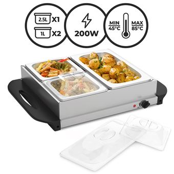 1 câble d'alimentation. Plage de température : 35-90 °C., Poids brut : 5 kg., Poids net : 4,5 kg., Nombre de casseroles : 2., Dimensions de chaque poêle : 33 x 27 x 6,5 cm. Plat Chaud Froid Professionnel Jago® Chauffe-Plats Électrique - Set De 2, En Acier Inoxydable, Maintien De La Température, 3 X Chauffe Alimentaire 600W 220V Chafing Dish Ensemble de buffet 6 l/9 l Chauffe-aliments électrique en acier inoxydable Contrôle de la température réglable 30 ° à 90 ℃ 800 W Carré 6 L-C : : MaisonServeur de buffet compact : ce serveur de buffet compact (1) est un excellent ajout à vos ustensiles de cuisine, parfait pour une fête, un buffet, un bureau, une remise de diplôme, Thanksgiving, Noël, un... Dimensions du produit : 56 x 36 x 26 cm. Spécificités Couleur : argenté. Type d'affichage : affichage numérique. Contrôle précis de la température : avec la commande à écran tactile, la température peut être réglée facilement et avec précision entre 35 °C et 90 °C pour garder les aliments parfaitement chauds Dimensions de l'emballage : 60 x 40 x 21 cm. Passe au lave-vaisselle : oui (poêle uniquement). 1 manuel d'utilisation en anglais., Remarquez: 1., Veuillez vérifier le style et la taille avant d'acheter., 2., Veuillez noter que ce produit ne garde que chaud et ne peut pas faire bouillir de l'eau. Source d'alimentation: filaire électrique Méthode de contrôle : écran tactile. Alora Chafing Dish chrome 3 plateaux par 3 - chauffe-plats - maintien... Contenu de l'emballage : 1 plateau électrique., 2 poêles alimentaires., 1 couvercle. Veuillez vous assurer que cela ne vous dérange pas avant de commander. Type de prise : norme européenne. FGHFD Chafing Dish, Chauffe Plat Chafing Dish Électrique, Buffets Chauffants Chauffe-Plat