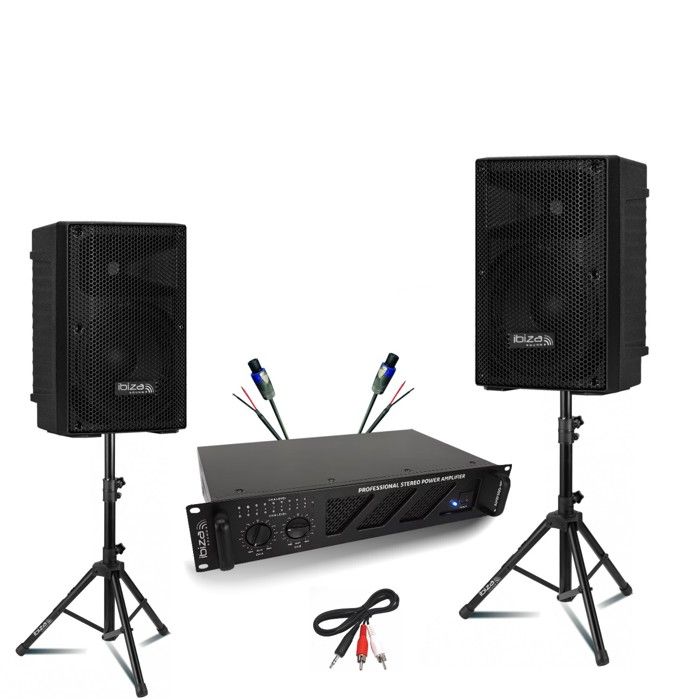 Les câbles fournis permettent une connexion rapide et propre dès réception. ✔️ Ce pack tout-en-un offre une sonorisation puissante et fiable grâce à deux enceintes XTK10-MKII et un amplificateur AMP300-MKII, le tout dans un format compact, robuste et facile à transporter, idéal pour les prestations mobiles. Connectiques RCA, Jack et Speakon garantissent une compatibilité maximale avec tous vos équipements. Les connectiques RCA, Jack et Speakon assurent une compatibilité maximale avec les équipements audio. Ensemble de 2 enceintes IBIZA SOUND DP235- ASTRO - Installation sonore 30 kg Livrés avec housse de rangement / transport ✔️ Câbles inclus : - 2 x Câbles haut-parleurs- 1 x Câble PC-RCA Elles sont parfaitement accompagnées par l’amplificateur Ibiza SOUND AMP300-MKII, qui délivre 2 x 240W sous 4 Ohms, avec des protections électroniques intégrées pour un fonctionnement sécurisé. SONO DJ 600W avec 2 ENCEINTES 300W AMPLI HIFI SONO STEREO MP5 VIDEO... L’ensemble est conçu pour une installation intuitive et un rendu sonore optimal dès réception. Ce pack réunit tout ce qu’il faut pour une sonorisation claire, puissante et fiable, dans un format pratique et transportable. ✔️ L’ampli AMP300-MKII fournit 2 x 240W sous 4 Ohms avec protections électroniques intégrées pour une utilisation sécurisée. Pack Sono Ibiza Pack Sono 2 Enceintes 2x400W Ibiza DISCO10B - Ampli 2x480W AMP600-MKII - 2 Portiques DJ Lumières Sono Dj Complet Méthodes de paiement* Livraison Marchand & évaluation Ibiza - XTK10-MKII - Enceinte Sono Passive 10/25 cm - Tweeter 25mm à Compression - Système Bass Reflex - Poignée et roulettes - Nouvelle Version - Noir - Fête, évènements, Club, conférence 93,76 € Meilleur prix total 93,76 € livraison incl Une housse de transport facilite les déplacements et protège votre matériel.