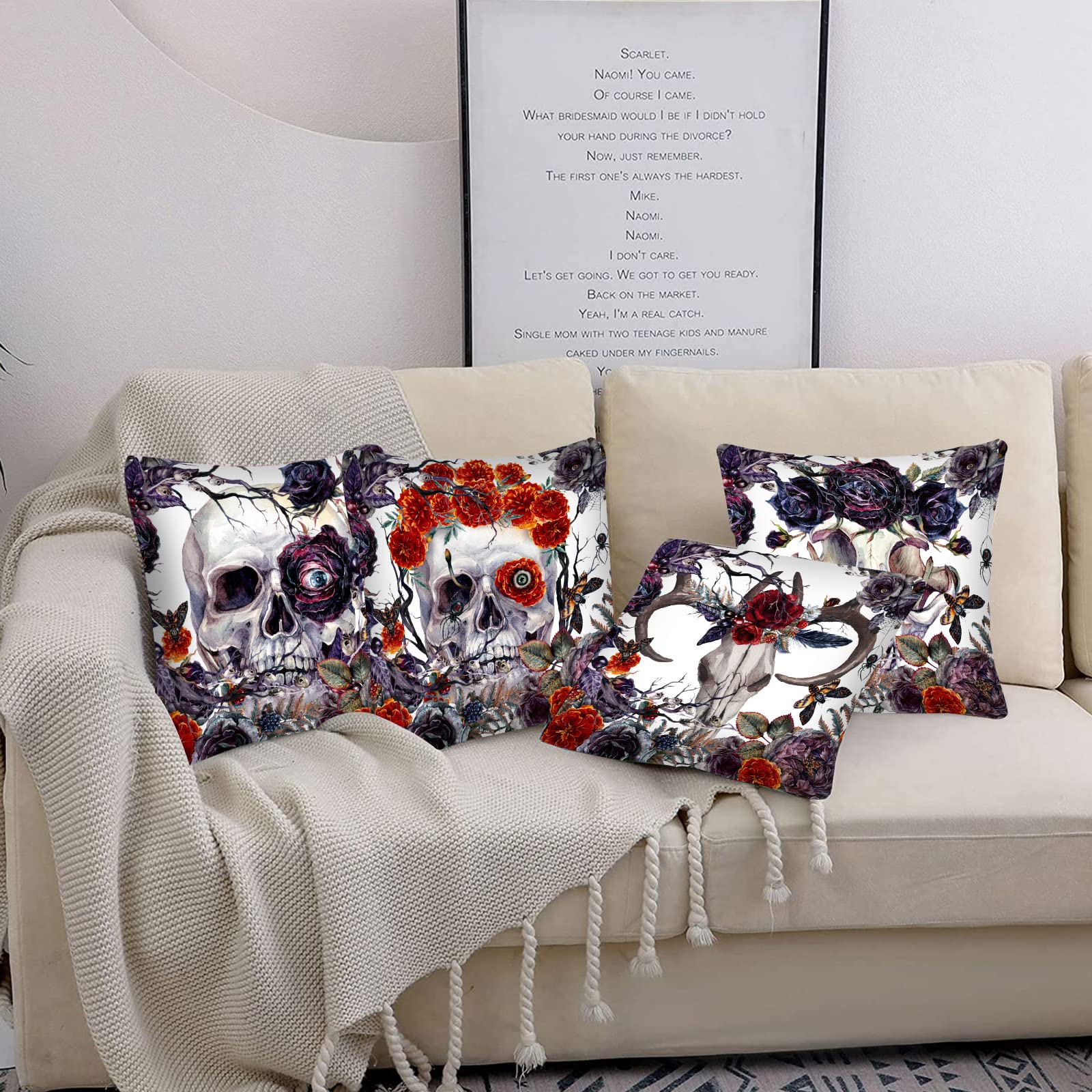 Matériau : les housses de coussin d'Halloween sont fabriquées à partir de tissu de lin avec une impression claire et vive qui maintient son apparence lors d'une... Dimensions des housses de coussin : 137 x 51 cm (sans le noyau), fermeture éclair dissimulée et lisse. Peut varier de 1 à 2 cm en raison de la découpe et de la couture à la main KQNZT Lot De 2 Housses De Coussin Décoratives Pour Canapé, Motif Lot de 2 Housses de Coussin décoratives Halloween, Motif tête