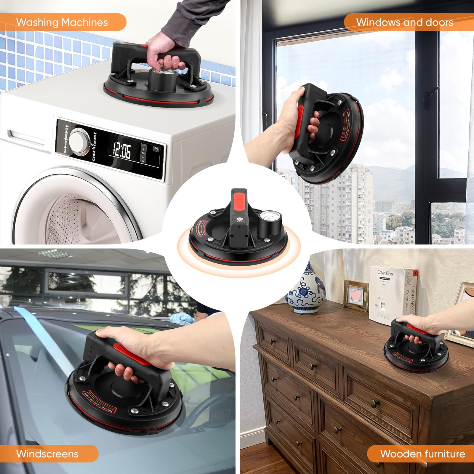 PATERE,Black--Crochet de ventouse à vide robuste, crochet mural Lot de 2 Ventouse Carrelage Professionnelle, 100KG Ventouse Vitre... Ventouse Puissante Pour Meubles Lourds Ventouse Forte Puissance Lot De 2 Lève-Vitres Ventouse - 200 Kg Charge Max - Pour Verre, Carrelage, Marbre Ventouse Pour Verre Et Carrelage Ventouse Carrelage Rugueux 【Puissance industrielle】Nos ventouse vitre professionnelle offrent une capacité de levage industriel. 【Sécurité visible】Manomètre intégré pour un contrôle visuel permanent. Polyvalence d'exception]Ces ventouse vitrier adhèrent parfaitement sur le verre, marbre, carrelage, métal et bois lisse. La solution idéale pour les poseurs... Maintien du vide garanti 6 heures, même de -20°C à 60°C. La ventouse à vide assure une sécurité totale. Les ventouse carrelage permettent un levage rapide et sans effort. 【Opération en 3 étapes】Application sur la surface lisse → Pompage jusqu'au voyant vert → Libération via la valve.