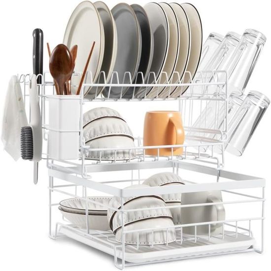 Prêt à l’emploi dès la sortie de la boîte, il vous permet de commencer aisément une vie de cuisine bien organisée. égouttoir 2 Niveaux Égouttoir Vaisselle 2 Niveaux – Egouttoir Vaisselle égouttoir Compact Multifonction 【Égouttoir à Vaisselle Grande Capacité】Capacité extra large, egoutoire vaisselle cuisine double étage amovible, avec une conception élargie et allongée (45 × 30 × 42 cm). Siapapla Égouttoir à Vaisselle Cuisine à 2 Niveaux Support à Vaisselle... Ce support d’égouttoir résiste à l’épreuve du temps dans toute cuisine. 【Égouttoir à Vaisselle Multifonctionnel】Ce égouttoir présente un design à étages pour répondre à divers besoins de rangement. Egouttoir à Vaisselle, Egouttoir a 3 Niveaux Grande Capacité avec bac... Facile à nettoyer : les taches de graisse et d’eau s’effacent facilement. 【Conception de Drainage Automatique】Notre egouttoir vaisselle permet un drainage automatique. L’étage supérieur comprend 13 emplacements pour assiettes standard et 6 crochets à tasses pour placer les assiettes en toute sécurité, tandis que l’étage inférieur spacieux offre un rangement organisé pour bols, casseroles, casseroles, planches à découper et autres accessoires de cuisine. Solerconm Égouttoir à Vaisselle 2 Niveaux, Vaisselle Inoxydable Durable 【Antirouille et Robuste】Notre égouttoir à vaisselle dispose d’un cadre métallique solide et d’un revêtement antirouille, garantissant une durabilité et une capacité de charge de 25 kg sans rouiller ni se déformer. Les instructions illustrées incluses et la vidéo d’installation HD permettent même aux débutants de l’assembler sans difficulté.