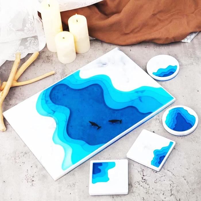 Plateau à thé en résine époxy, plat à uits à trois couches [Moule à sous-verre pour plateau] Fabriqué en silicone de haute qualité, le moule pour résine époxy est doux, épais, a une excellente élasticité et une grande résistance à la déchirure, réutilisable et facile à nettoyer. Moule Epoxy Moule Resine Epoxy,2 PCS Moules En Silicone Pour Résine Grand Plateau Kit Moulage Résine époxy Silicone Laisser durcir pendant 24 heures avant de démouler. DXIA 6Pcs Moule Resine Epoxy, Moule sous Verre Silicone, Moule à Dessous de Verre en Epoxy Coaster Moules Kit, pour Créer sous-Verres en Agate d'art, Décoration de Maison, Tapis de Bol, Décors, DIY Fan de DIY ? Ce moule en silicone naturel est parfait pour créer des plateaux, dessous de verre ou petits bols en résine époxy ! Avec sa taille généreuse (18... [Démoulage facile] La résine époxy moule silicone est lisse à l'intérieur et se démoule rapidement. [Largement utilisé] Ces sous-verres en silicone pour résine époxy sont parfaits pour réaliser des objets décoratifs en résine. Après le démoulage, il peut être rapidement remis dans son état d'origine, ce qui est pratique pour une réutilisation ultérieure. 3) Verser ensuite dans le moule et remuer lentement. Ils peuvent être utilisés non seulement comme sous-verres, mais aussi comme objets de rangement pour la maison, tels que des bijoux, des sous-verres, des porte-savons, des chandeliers, des décorations de table, des objets de bricolage en résine, des cadeaux en cristal, des objets décoratifs, etc. 2) Ajouter des paillettes ou des couleurs selon les besoins.