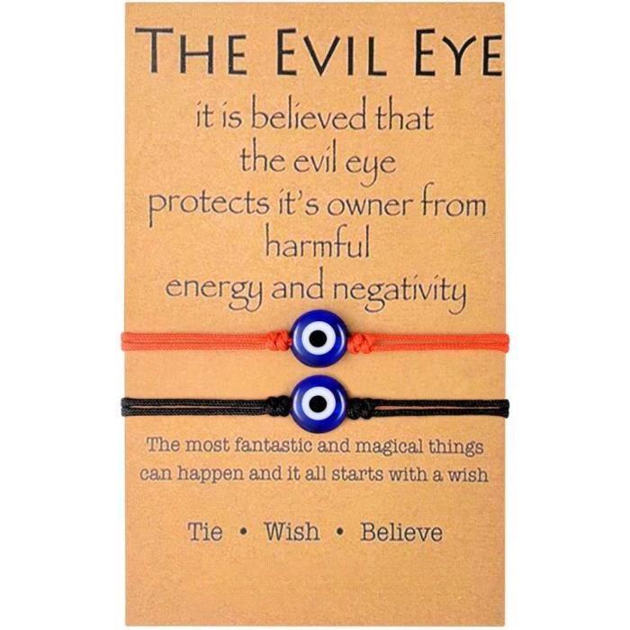 Lot de 2 bracelets mauvais œil faits à la main avec carte réglable à 7 nœuds pour femmes, hommes, filles, garçons, couples et amis ... Bracelet Contre le Mauvais... Bracelet Yeux Bleus : Un bracelet porte-bonheur, parfait comme cadeau pour des occasions spéciales comme les anniversaires et la Saint-Valentin. Contenu de l'emballage : Comprend 2 bracelets, adaptés pour offrir à la famille et aux amis, les yeux bleus symbolisent la protection et la chance. Bracelet Corde Cirée Durable 2 Pcs Bracelets De Faits à Protection Contre Le Mauvais œil Bracelet porte-bonheur aux yeux bleus : corde cirée de haute qualité, finition soignée, durable et pas facile à décolorer, confortable à porter. Le lot comprend 3 bracelets avec des cordons de différentes couleurs et un charme bleu mauvais œil pour éloigner les mauvaises ondes. La fermeture est ajustable... Yeux bleus : Un bracelet tressé avec des yeux bleus symbolise la chance, la richesse et la protection. Ensemble De Grunge Dessinés à La Main Mauvais œil Turc Symbole De