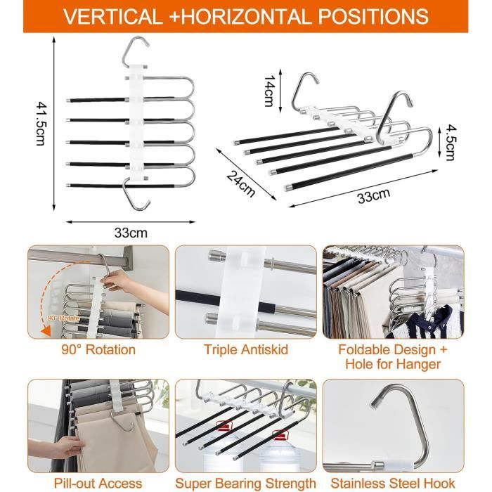 Cintres en velours - lot de 50 - antidérapants - avec crochet pivotant Cintres à pantalons Avec une forme , cintre est unique et attrayant. Cintres Antidérapants 2 Pièces Cintres Pantalons, Cintre Gain De Place, Cintre Pantalon Organisation Dressing Pantalons - cintres vous offrent des options de rangement complètes, vous permettant de l'espace de votre placard et de garder vos articles soigneusement organisés., Porte-pantalons pour placard. Cintres pour placard : compact et petit, le clip ne prend pas de place, adapté pour un magasin de vêtements ou un usage domestique, pinces à pantalon Voir plus de détails Vous avez des questions à propos des informations du produit en français? Contactez-nous Signaler un problème avec ce produit Cintres Pantalons, Lot De 30, Antidérapants, Pour Jupes, Tendeurs En... Organisateur de jeans - cintres à pantalons vous à l'espace de votre garde-robe tout en gardant vêtements et organisés !, , cintre à pantalons Organisateur de vêtements cintre pour pantalons est doté d'une structure simple, pratique à utiliser. Organisateur de pantalons pour placard - cintres vous offrent des options de rangement complètes, vous permettant de l'espace de votre placard et de garder vos articles soigneusement organisés, organisateur de pantalons pour placard - Avec une conception ouverte, cintres facilitent l'accès et la suspension de vos articles, vous faisant et des efforts pour organiser vos vêtements . Cintres à pantalons peu encombrants - larges applications, ils peuvent utilisés pour rangement et séchage des pantalons dans placards, donc polyvalents et , cintre peu encombrant forfait comprend 6 cintres Caractéristiques -Informations produit : Support de rangement pour garde-robe -Matériau : acier inoxydable, cintres pour pantalons en PVC -Couleur : cintres multi- -Taille : 31,00 x 14,00 x 1,00 cm/12,18 x 5,50 x 0,39 pouces organisateur de rangement pour pantalons - La conception antidérapante de cintres garantit que vos vêtements restent bien et ne tombent pas, évitant tout ou désordre, ce qui permet d'économiser de l'espace porte-pantalon.