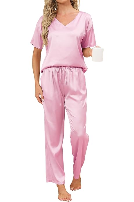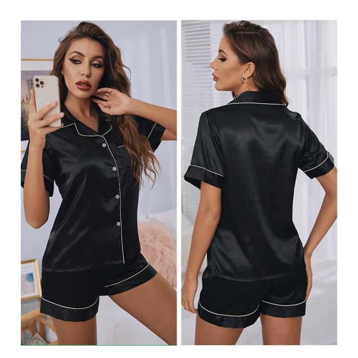 2 vendus 4.5. Ensemble pyjama décontracté pour femmes, haut sans manches et pantalon élastique doux, coupe décontractée, confortable, avec cœur, lune ou mignon... L'ensemble court boutonné pour femme est parfait pour votre petite amie, sœur, fille, amie proche, mère ou épouse. Élégant : cet ensemble de pyjama boutonné pour femme n'est pas seulement pour l'heure du coucher, cet ensemble de pyjama graphique 2 pièces pour femme est idéal pour les week-ends paresseux, les soirées cinéma ou même... Pyjama D'Halloween Pour Femme 2 Pièces En Satin De Soie Avec Motif Fantôme - Vêtement De Nuit Sexy Boutonné à Manches Courtes, A1-beige, Petit Weiqiqre Ensembles de Pyjama Mignons pour Femmes Ensemble de Pyjama en Satin de Soie Manches Courtes Vêtements de Détente Deux Pièces Ensemble de Pyjama Boutonné avec Poches