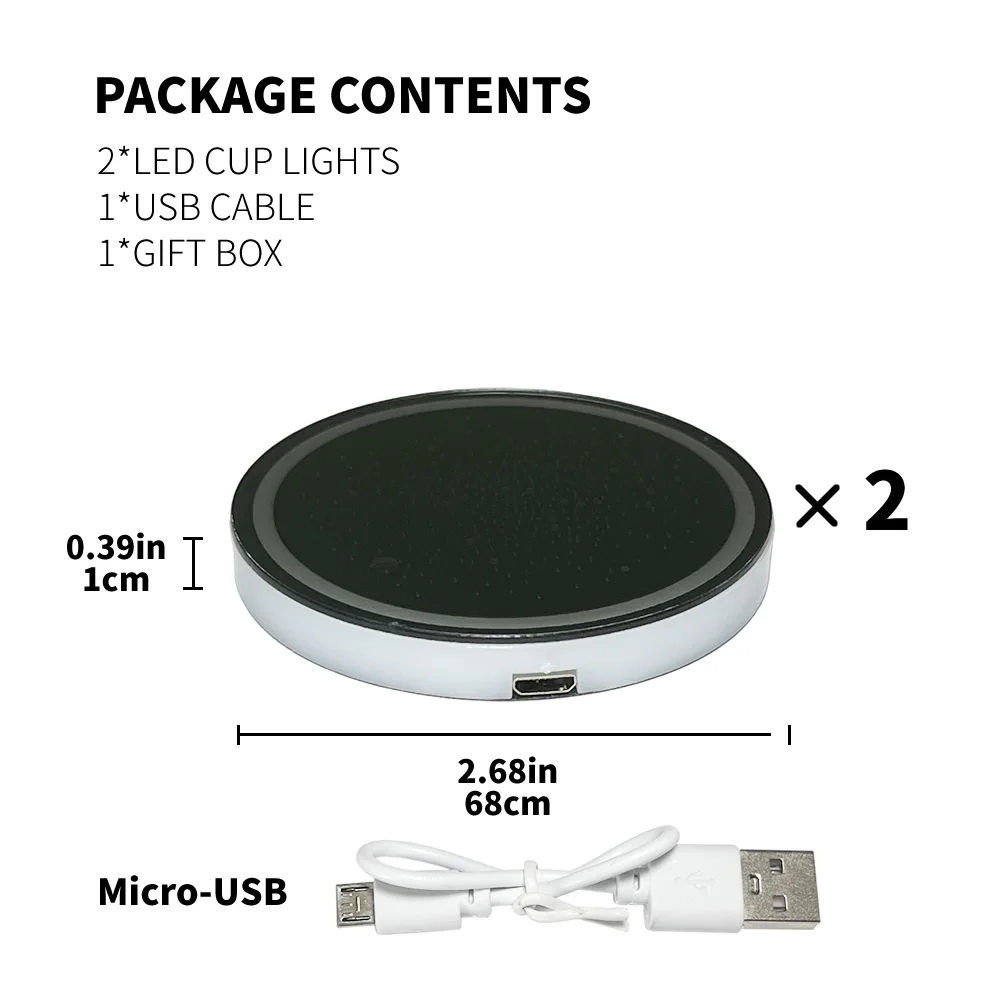 Large gamme d'utilisations:Nos dessous de verre lumineux conviennent à tous les véhicules,ils sont également parfaits pour les lumières décoratives intérieures,ils vous apportent une expérience de conduite cool,ils peuvent également être utilisés comme cadeaux atmosphériques pour la famille,les amis,les collègues de travail et la plupart des propriétaires de voitures. éclairage Voiture Ambiance 2 Pièces Lumières LED Pour Porte-gobelet De Voiture Avec Sous Led Ambiance Voiture Description du produit Pourquoi choisir la lampe LED VOAKZEF pour porte gobelet de voiture ? Ces dessous de verre lumineux intelligents à induction peuvent être utilisés pendant environ 15 jours sur une charge complète 7 couleurs et 3... Package includes 2 x LED car cup holders 1 x USB cable, Remarque:1., Si la surface présente quelques rayures,veuillez retirer le film protecteur,le tapis pour tasse redeviendra lisse rapidement., 2., Assurez vous que la batterie est complètement chargée avant d'utiliser le tapis pour tasse. (note:chargez le dessous de verre avant de l'utiliser et enlevez la pellicule protectrice sur la surface) EN STOCK : Lot de 2 porte-gobelets LED, sous-verres de voiture LED avec coussin de tasse luminescent 7 couleurs, tapis de tasse de charge USB pour... Le bouton d'alimentation se trouve à l'arrière. Taille de la lampe Capteur de lumière et de vibration:Doté d'un capteur de lumière et d'un capteur de vibrations,le sous-verre s'ouvre automatiquement lorsqu'il fait sombre ou qu'il vibre,et se referme automatiquement après environ 30 secondes si l'environnement est très lumineux ou s'il n'y a pas de vibrations,ce qui permet de trouver plus facilement l'emplacement de votre boisson. Cool Luminous LED Sous-verres - Porte-gobelets - Siècle des Lumières' ambiance Taille:environ 6,8 cm x 0,9 cm,compacte et facile à transporter,ne prend pas de place. 7 couleurs et 5 modes:La lumière nouvellement améliorée a 7 couleurs(violet,bleu,vert, bleu glacier,rouge,jaune,blanc) à choisir,il y a un bouton à l'arrière de la lumière, appuyez longuement sur le bouton pour allumer ou éteindre la lumière,et chaque fois que vous appuyez sur le bouton,vous pouvez changer une couleur ou un mode,les modes sont:mode couleur fantôme (3 sortes d'effets de lumière en continu),cycle de 7 couleurs,gradient de 7 couleurs,respiration de 7 couleurs,mode monochrome.