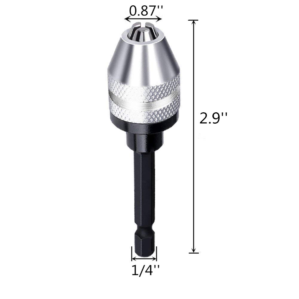 Contenu de l'emballage : 1 mandrin de perçage., 10 forets (0,8 à 3,0 mm). Caractéristiques : Nom du produit : mandrin de perçage. Mandrin à Clé Pour Perceuse 2 Pièces Mandrin Perceuse Autoserrant Hexagonal 6.35mm (1/4") 0.3-6.5mm Pour Visseuse Électrique Outils Conversion | Leroy Merlin Mandrin Pour Perceuse électrique Lot de 2 mandrins de perceuse robustes à 3 griffes en alliage d... Matériau : alliage d'aluminium + acier au carbone., Dimensions approximatives : 0,3 à 3,6 mm. Caractéristiques : Mandrin de perçage avec plage de conversion de 0,3 à 3,6 mm : ce mandrin est conçu pour s'adapter à une large gamme de tailles de forets, de 0,3 mm à 3,6 mm. Il assure une prise ferme sur les embouts, des résultats de perçage antidérapants et précis. Ensemble complet d'accessoires : comprend soit 10 forets (0,8-3,0 mm), 20 forets (0,3-1,6 mm) ou 25 forets (0,5-3,0 mm) options pour couvrir divers besoins de perçage de précision pour les projets de bricolage et les applications détaillées en atelier Application : pour moulin électrique. Il offre polyvalence et commodité pour diverses tâches de perçage. Mandrin de perçage de précision : garantissant un perçage précis avec une plage de conversion polyvalente de 0,3 à 3,6 mm, cet adaptateur sans clé maintient en toute sécurité des forets fins pour un travail détaillé et une commutation rapide des tâches sans glissement Changement rapide pour une commutation efficace des tâches : ce mandrin permet un changement rapide et sans effort des forets, permettant des transitions fluides entre les différentes tâches. Multi Sans Clé Pour, 4 Pièces Mini Perceuse Sans Clé Multifonction... Quantité : 11 pièces, 21 pièces, 26 pièces (en option). Mécanisme de changement rapide : conçu pour un flux de travail efficace avec un fonctionnement de serrage des doigts qui élimine le besoin de clés de mandrin, permettant des changements immédiats d'embouts entre les différentes tâches de perçage lors de vos déplacements Tige hexagonale 6,35 mm pour une fixation facile : le mandrin dispose d'une tige hexagonale de 14 qui se fixe facilement aux perceuses électriques. 25 + 1 Ensemble De Perceuse Électrique Sans Fil, Kit D'Outils