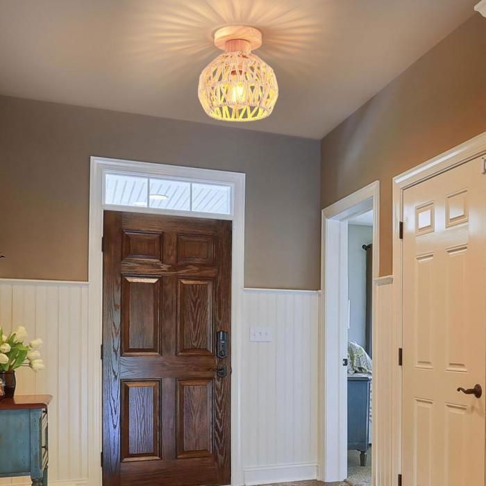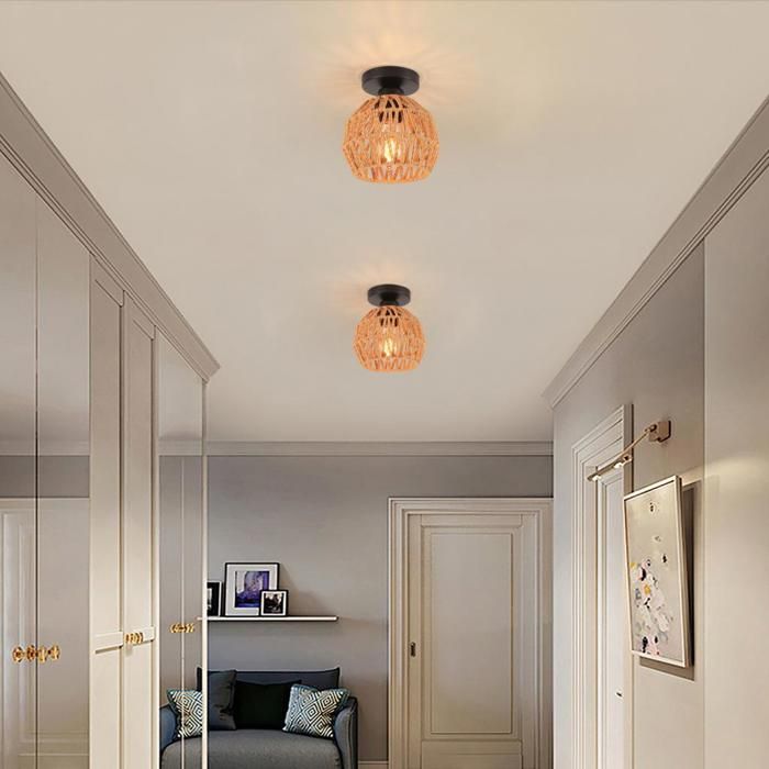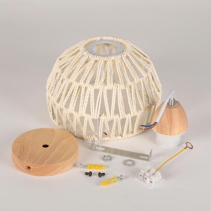 Décoration Chambre Style Campagne LIGKIN Lot De 2 Plafonnier Vintage Industrielle, E27 Lampe De Plafond éclairage Chaleureux Rotin Artisanat tissé à la main]Lustre est équipé d'un abat-jour tissé ouvert qui projette de belles ombres sur le plafond, transmet la lumière de manière homogène... Plafonnier Vintage Industrielle Lustre En Bois Et Rotin Cage Abat Jour Lampe De Plafond E27 Eclairage Decoration Suspension Luminaire Pour Chambre Entree Couloir Bar Restaurent 92253598 【Ampoule E27 applicable】Ce plafonnier en rotin nécessite d'une douille d'ampoule E27 standard, compatible avec toutes les ampoules à incandescence, LED et halogène tungstène (Ampoule Non Incluse, Max 60W). Lot de 2 Retro Lustre Suspension Industrielle E27 26cm Lampe Abat-jour Metal Luminaire Restaurant Cafe ; Dimensions de abat-jour · 26x16,5 cm; ; Longueur du câble... Connectez simplement l'abat-jour à la verrière du plafond, puis connectez-vous au câblage de la maison et installez l'ampoule. 【Plafonnier boho unique】Ce plafonnier boho se compose d'un abat-jour en rotin naturel et une base en métal. La maison aura une atmosphère vintage élégante, parfait pour la décoration intérieure. Spécifications : Support d'ampoule : E27 Ampoules applicables : Toute ampoule standard E27 (nous ne fournissons pas d'ampoules) Puissance : 60 watts maximum Tension : 220-240 volt Taille de l'abat-jour : 16CM de long et 17CM de haut Largeur de la base : 10CM Style : bohème, Style country, Vintage, Rétro, Classique Matériau : métal +corde de rotin naturelle tissée à la main