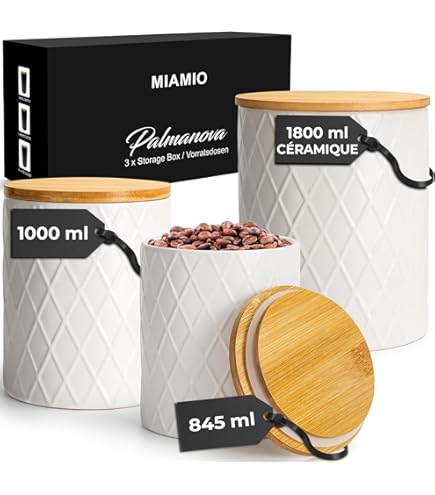 Caractéristiques de l'objet: Dimensions : petit env. 16 x 9 cm (hauteur x diamètre) Matériau : métal, bambou Couleur : noir, or, marron Commandez ces conteneurs de stockage maintenant et assurez-vous un stockage optimal d'une grande variété d'aliments dans votre cuisine ! POLYVALENT : Idéal comme porte-cuillère de cuisine à côté de la cuisinière, porte-couverts sur la table à manger ou pour ranger des aliments secs, des collations, des biscuits ou des bonbons ! Les aliments sont conservés au frais et l'humidité est exclue ! Boîte De Rangement Avec Couvercle Anthracite Plastique 21 X 14,2 X 32 Cm 85175328 8 x 9 cm (hauteur x diamètre) Dimensions : grand env. Ensemble pratique : L'ensemble de rangement élégant se compose de 2 bocaux de rangement cylindriques légers et stables, chacun avec un couvercle circulaire en bambou ! Boite Rangement Frigo et Aliments Organisateur Canettes de Soda, Boîte... 8 x 9 cm, grand env. Ensemble de pots de rangement avec couvercle en bambou - boîte de rangement en métal pour aliments - organisateur pour la cuisine - récipient en métal avec lettrage Vous cherchez des bocaux de conservation écologiques ? Alors prenez nos boîtes de rangement avec couvercles en bois ! ENSEMBLE PRATIQUE : L'élégant ensemble de rangement se compose de 2 bocaux de rangement cylindriques légers et stables, chacun avec un couvercle circulaire en bambou ! Récipient Métal Avec Couvercle Bambou Com-four® Lot De 2 Pots De Rangement Avec Couvercle En Bambou Lot 2 Pots Noir Doré Set de récipients de stockage de 3,6 litres, 8 pièces, plastique... AROMA DIGHT : Le couvercle avec joint assure l'étanchéité du récipient métallique contre les odeurs.