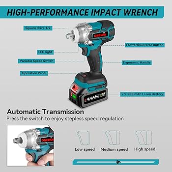 m), permettant de relever tous les défis avec aisance. Sa conception robuste le rend idéal pour dévisser ou serrer les écrous de voiture, de moto, ainsi que les boulons de portes ou de murs. Notre clé à chocs est équipée du moteur sans balais de septième génération, offrant des performances largement supérieures à celles de ses concurrents sur le marché. Performance Exceptionnelle:Cette clé électrique 1/2 pouce offre un couple impressionnant de 405 lb-pi (550 N. De plus, notre produit respecte les normes écologiques, offrant ainsi une expérience utilisateur écoénergétique et respectueuse de l’environnement. Coparatif Clé à chocs sans fil » les 11 eilleurs en 2025 Cela signifie que vous pouvez travailler sans souci pendant de longues périodes, éliminant ainsi l'anxiété liée à la durée de vie de la batterie. Que vous effectuiez des travaux délicats ou des tâches de serrage intensif, cette clé à chocs saura s’adapter parfaitement. Description du produit: Cet outil électrique à percussion de 1/2 pouce offre un couple impressionnant allant jusqu'à 550 Nm (405 lb-pi), permettant de relever tous les défis avec facilité. Couple 750 Nm Brushless Clé à Chocs Sans Fil 1 / 2 Pouce, Couple Maximal 420n.m, Pistolet à Clé électrique Brushless Clé à choc sans fil Couple maxi 750 N.m, batteries 4000mAh Li-Ion... La clé à choc ADDK est équipée d'une nouvelle batterie lithium haute performance, offrant 30 % d'autonomie en plus par rapport aux batteries standard de 4,0 Ah. Elle fonctionne de manière ultra-silencieuse et intègre plusieurs systèmes de protection, garantissant votre sécurité et fiabilité dans des situations de forte charge. Que ce soit pour resserrer des boulons tenaces lors de réparations automobiles ou pour des tâches d'entretien ménager quotidiennes, vous apprécierez sa puissance, rendant chaque difficulté gérable. Que ce soit pour des opérations délicates ou un serrage puissant, vous pouvez tout gérer avec facilité. Clé à Chocs Sans Fil Brushless Compatible avec Makita 18 V 1/2 750Nm Boulonneuse à Notre produit respecte les normes de l'énergie verte, vous offrant une expérience d'utilisation écologique et économe en énergie. Cette clé à chocs est dotée d'une fonction de réglage de la vitesse continue, avec six niveaux de vitesse (0-1400/0-1640/0-1880/0-2120/0-2360/0-2600 RPM), que vous pouvez ajuster facilement grâce à la gâchette pour répondre précisément à vos besoins. L’écran LED indique en temps réel le couple appliqué. Conscients que l’autonomie des batteries est une priorité pour nos utilisateurs, nous avons équipé cette clé d’une batterie lithium haute performance, offrant 30% d’autonomie supplémentaire par rapport aux batteries standard de 4,0 Ah.