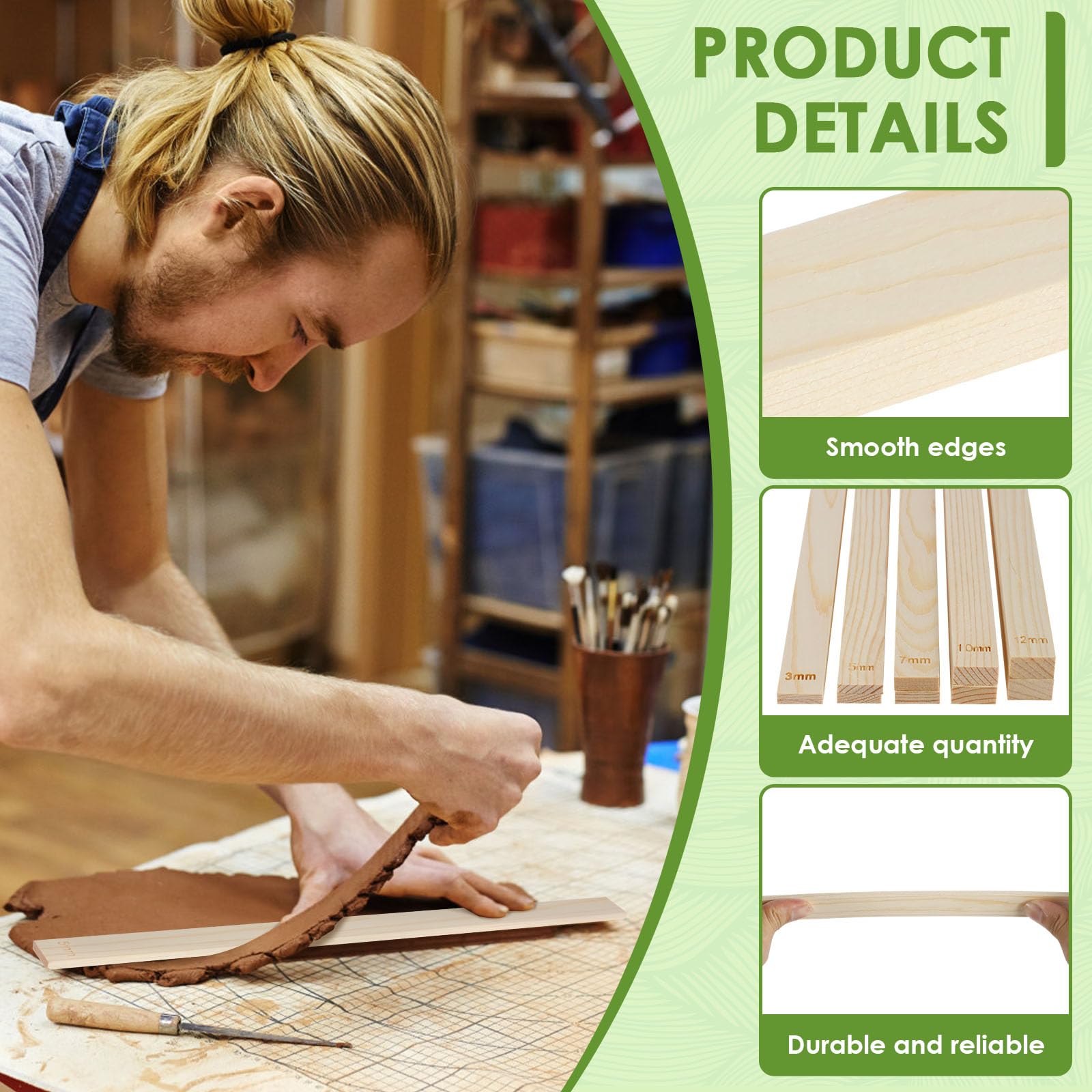BESTYASH Lot de 2 rouleaux de pâte légers et antiadhésifs pour Modèle de rouleau à pâte en bois : simple vous permet de le tenir d'une main et de libérer une autre main pour faire d'autres choses, rouleau à pâtisserie de cuisine Règle épaisseur Pâte Bois Rockible Lot De 2 Rouleaux à Pâtisserie Légers En Bois Outil Artisanat Argile Modelage - Facile à utiliser : pratique à utiliser, la barre roulante restera en place sur le tapis. Spécification: - Matériel: Bois - Couleur: Couleur Bois - Taille: - 40 cm x 2,5 cm/15,75 pouces x 0,98 pouces - Épaisseur (facultatif) - 5mm/0., 20 pouces - 7mm/0., 28 pouces - 10 mm/0,39 pouce Le forfait Comprend: 2 guides de rouleau à pâtisserie Note: Veuillez autoriser de légères erreurs dues à la mesure manuelle et aux différents moniteurs. Contenu de l'emballage: vous recevrez 10 guide de profondeur et 1 rouleau à pâtisserie en bois, des tailles riches et une quantité suffisante peuvent répondre à... - Application: Convient pour étaler la même épaisseur de pâte à biscuits, de pâtes, d'artisanat en argile et de . Facile à nettoyer : il suffit de rincer à l'eau et de continuer à sécher. Application: Convient pour étaler la même épaisseur de pâte à biscuits, de pâtes, d'artisanat en argile et de . Facile à utiliser : pratique à utiliser, la barre roulante restera en place sur le tapis.