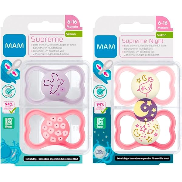 La marque n° 1 au Royaume-Uni pour biberons et tétines : approuvée par les familles et appréciée par les bébés depuis plus de 45 ans Tétines MAM Original Tetine Mam 6 Mois Et Plus Fluorescente MAM Original Soothers Lot De 2 Tétines De 0 à 6 Mois, Livrées Dans Un étui De Stérilisateur, Matériaux Durables, Accessoires Pour Bébé Pour Sucette Mam Tétines MAM Marque Numéro 1 UK Lot de 4 tétines MAM Original jour et nuit – Apaisantes jour et nuit pour les bébés de 0 à 6 mois. Jolies tétines anatomiques MAM Original. Disponible en variations de 9 couleurs. Ce modèle de la série MAM Original a une tétine symétrique. Achetez ici Avantages du produit : • Conçu pour les bébés âgés de 0 à 6 mois • 2 tétines de jour et 2 tétines phosphorescentes • Tétine en silicone SkinSoft ressemble à maman et est acceptée par 94 %* • Forme symétrique et orthodontique pour un développement buccal sain • Bouclier incurvé et doux pour la peau avec de grands trous d'aération • Aide à réconforter bébé jour comme nuit • Sans BPS/BPA pour plus de paix. Copyright © 2025, Nielsen Consumer, LLC » Mam Sucette Original Nuit 2-6 Mois lot de 2 : Sucette anatomique Nuit en Silicone. Ultra-petite, souple et légère. Avec bouton phosphorescent décoré pour que Bébé la retrouve facilement dans la nuit. De 0 à 6 mois. 6 modèles disponibles (selon arrivage). Fabriquée en Europe. Coloris et motifs selon disponibilités. Voir la description complète 4,95 € HT 5,94 € TTC Motif Lapin... Chaque tétine est fabriquée avec une tétine symétrique en silicone SkinSoft qui est familière et acceptée par 94 % des bébés*, idéale pour aider les bébés à s'apaiser en toute simplicité. Le lot de 4 tétines MAM Original Day & Night est conçu pour réconforter et soutenir votre tout-petit de la naissance jusqu'à 6 mois. Conçu pour les petites bouches : léger et parfaitement dimensionné pour les bébés de 0 à 6 mois MAM Lot de 4 tétines en silicone doux pour bébé de 0 à 2 mois avec clip tétine, jour et nuit (2+2 Avec deux tétines classiques et deux qui brillent doucement dans le noir, cet ensemble facilite l'installation de bébé à tout moment de la journée, en particulier lorsque les lumières sont éteintes. Doux pour la peau : bouclier incurvé avec de grands trous d'aération et une surface douce pour aider à prévenir les irritations de la peau