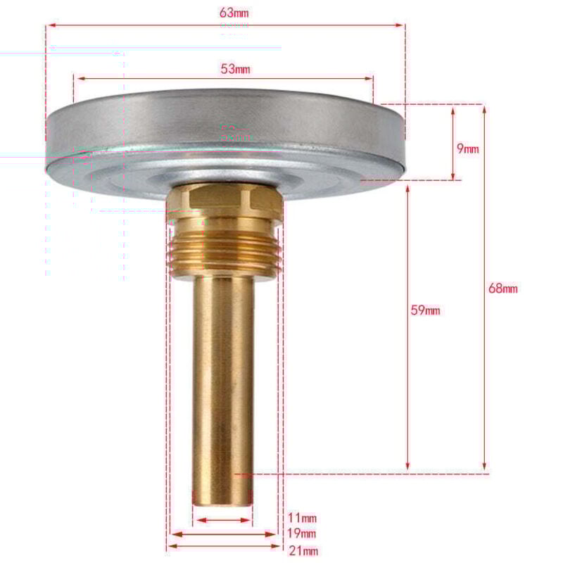 Thermomètre 63mm Lot de 2 thermomètres bimétalliques pour Spécifications: *Nom du produit : 2 thermomètres bimétalliques de 63 mm. Thermomètre Cuivre 0-120°C Pour Four Barbecue Lot De 2 Thermomètres Bimétalliques Avec Gaine En Cuivre De 63 Mm Pour Thermometre Chaudiere Chauffage Le thermomètre est sensible et permet une lecture facile de la température. Le thermomètre bimétallique modèle 52, avec son boîtier et son plongeur en acier inox, représente le modèle d'entrée de gamme parmi les thermomètres de process, mais il est également utilisé pour des applications exigeantes dans la construction de machines Lot de 2 thermomètres bimétalliques avec gaine en cuivre pour systèmes de chauffage de chaudière, plage de 0 à 120 °C, installation à visser de 2 po pour l'eau... Design robuste : ces thermomètres en acier inoxydable avec manchon en laiton sont conçus pour répondre aux exigences élevées dans les environnements de chauffage. * Principalement pour les chauffages et les fours extérieurs. Vision claire : le grand cadran permet un affichage facile de la température lors de la cuisson ou du chauffage. Avec boîtier en acier inoxydable et manchon en laiton pour une performance durable. Contenu : ce kit contient deux thermomètres bimétalliques de 63 mm qui conviennent à différentes applications telles que la surveillance de la température de l'eau, de l'huile ou de l'air. Spécifications: Ce thermomètre de 63 mm est un thermomètre analogique bimétallique et convient pour mesurer la température dans diverses applications telles que l'eau, l'huile ou l'air.
