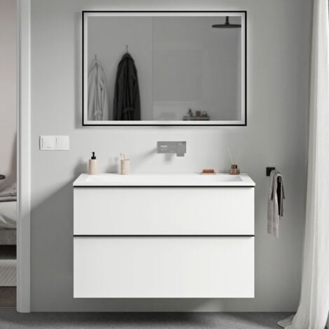 Son design harmonieux allie élégance esthétique et praticité, offrant une surface lisse et facile à nettoyer. Pré-assemblé s 60cm 2 Tiroirs Chêne Naturel + Vasque Noire Et Miroir Ovale Meuble Salle De Bain Cette fonctionnalité s'accorde parfaitement avec un meuble sous-vasque de 60 cm ou un meuble avec vasque. Portes élégantes et incurvées en deux finitions élégantes : Choisissez entre deux finitions élégantes : un blanc mat moderne ou un sable doré chaleureux et sophistiqué pour les portes de vos armoires. Idéales pour votre ensemble de salle de bains ou comme meuble élégant pour les petites salles de bains. Design élégant et compact : la vasque ronde en fonte minérale s'harmonise harmonieusement avec les courbes du meuble, créant une esthétique épurée et harmonieuse. Meuble de salle de bain 60 cm CITY Finition gris Mécanisme de porte innovant: Façades incurvées avec poignées intégrées Tiroir à fermeture amortie: Conception en acier ultra-fin avec découpe pour siphon Matériaux: Corps en contreplaqué/MDF incurvé avec vasque en pierre artificielle Avantages Pré-assemblé: Montage mural facile en quelques minutes Optimisé pour l'espace: Idéal pour les petites salles de bains et WC Facile à nettoyer: Surface résistante aux rayures et à la texture mate Fonctionnement silencieux: Tiroirs à fermeture amortie pour une expérience paisible Idéal pour les pièces modernes Ses courbes fluides créent une sensation d'espace, même dans les salles de bains compactes. Idéal pour les toilettes invités avec meuble sous-vasque ou les petites salles de bains. Contenu 1 meuble bas pré-assemblé avec vasque Tout le matériel de montage nécessaire Notice de montage détaillée Garantie fabricant de 24 mois Avertissement De Sûreté Lire attentivement les instructions de montage et utiliser des techniques de levage appropriées pour éviter les blessures. Dotées de courbes douces et d'une poignée intégrée, ces options allient simplicité et facilité d'utilisation. La notice de montage est incluse. Avec son encombrement réduit, ce meuble de 60 cm est idéal pour les salles de bains modernes et les petits espaces. Le meuble est pré-assemblé et prêt à être fixé au mur, avec une notice d'installation complète. Remarque : robinet, bonde et miroir non inclus Burgbad Junit Ensemble de meuble de salle de bains, vasque en fonte... Caractéristiques haut de gamme Dimensions: 60 cm (L) × 40 cm (P) × 50 cm (H) Disponible dans une variété de couleurs élégantes, il s'harmonise avec les intérieurs de salle de bain modernes, classiques ou compacts. Ce meuble est la solution idéale pour des toilettes d'invités ou pour compléter un ensemble de salle de bains complet, alliant design pratique et élégance intemporelle. Surface durable et facile à nettoyer : Le lavabo et le meuble sont dotés d'une surface résistante à la saleté, à l'eau et aux rayures. Son lavabo incurvé intégré en fonte minérale, disponible dans une large gamme de couleurs pour s'adapter à différents styles de décoration, apporte une touche d'élégance à toute salle de bain moderne.