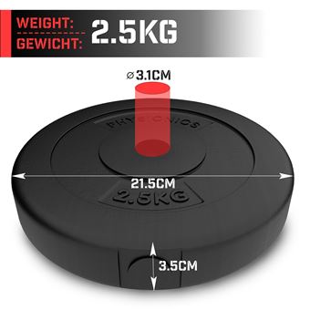 Gilet Lesté 2 X 5Kg + 2 X 2,5Kg - 3 Poignées - Trous De Disques De Poids SPORTNOW Lot de disques poids 2 x 5 kg avec trou de 5 cm, paire de SPORTNOW Ensemble de disques de poids, 2 x 10 kg, norme olympique, caoutchouc, silencieux, Noir... Optimisez votre salle de sport avec le kit de disques de poids SPORTNOW, incluant quatre disques (deux de 5 kg, deux de 2,5 kg) pour barres de 2,5 cm. Dotés de trois poignées ergonomiques et d'un revêtement protecteur en polypropylène, ils sont parfaits pour divers exercices et protègent le sol. Trois trous de préhension par plaque de poids pour des exercices variés sans barre Package includes: 2 x Plaque de Poids de 5 kg 2 x Plaque de Poids de 2,5 kg Couverture épaisse en polypropylène qui protège les sols et minimise les odeurs KIT DE POIDS COMPLET : Inclut 2 poids de 5 kg et 2 poids de 2,5 kg, cet ensemble de disques de poids est idéal pour enrichir vos séances de fitness, que ce soit à domicile ou en salle MULTIFONCTIONNALITÉ : Chaque disque de poids est équipé de trois trous pour une prise en main facile, permettant de diversifier les exercices sans utiliser de barre, pour une meilleure adaptabilité de votre entraînement Caractéristiques du produit : Revêtement en caoutchouc durable; Poignées Tri-Grip ergonomiques; Compatibles avec toutes les barres olympiques; Noyau en fonte...