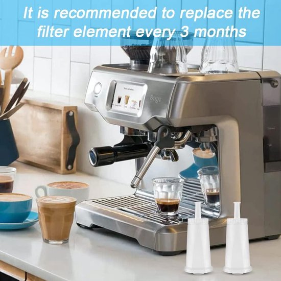 BES008 Sage Barista Express Lot de 4 filtres à eau compatibles avec filtre à eau Sage de rechange pour SES008 SES810 SES875 SES880 SES920 SES980 SES990 Ces filtres de rechange sont fabriqués à partir de matériaux de qualité alimentaire, sans plomb et sans BPA, garantissant ainsi un café sain et savoureux pour toute la famille Cartouche Filtre Machine Café 2 X Filtres à Eau De Rechange ANGO Pour Machines à Café SAGE Filtre Eau Machine Sage Compatible avec les machines à café Sage SES 990/980/500/878/875/880/920/810., Compatible avec les filtres à eau de rechange BES008 et les modèles y compris Barista Express, Barista Pro, Barista Touch, Bambino et Oracle. Les cartouches filtrantes à eau FILSWA sont conçues pour les filtres de machine à café Sage. FILTRE À EAU DE SURITÉ Le filtre à café de remplacement SES008 est composé de matériaux sans plomb, sans BPA et de qualité alimentaire pour garantir que... Veuillez vérifier le code de lot de votre machine avant l'achat. Le tissu filtrant fin avec charbon actif en coquille de noix de coco élimine le chlore, le plomb, le cuivre, le tartre et d'autres impuretés pour une eau plus saine et un café plus savoureux. Facile à installer et à utiliser : il suffit de tremper le filtre à eau Barista dans l'eau pendant 5 minutes avant utilisation. Chaque filtre dure jusqu'à 3 mois ou 12 semaines selon l'utilisation de la machine.