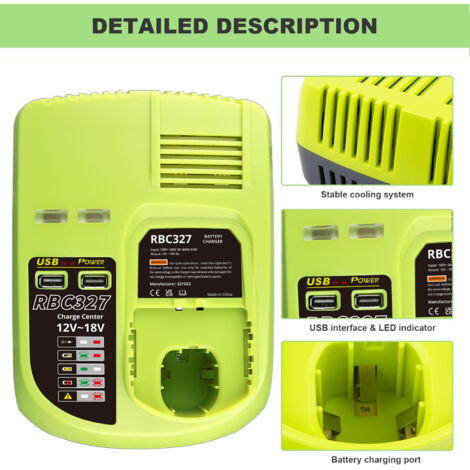 【Haute Performance & Durabilité】Avec une capacité de 5., 5Ah, cette batterie alimente les perceuses, ponceuses et tondeuses pendant 2 à 3 heures. Pack de 2 batteries RYOBI 18V OnePlus 5.0Ah Lithium-ion - 1 Cette polyvalence étend l'utilité de la batterie au-delà des outils, maintenant vos appareils électroniques opérationnels. Batterie Ryobi 18V 5Ah 2 X Ryobi 18V 6.0Ah ONE+ Plus Compatible Battery P108 P104 BPL-1815 Batterie Pour Tondeuse Ryobi Elle convient à tous les outils du système sans fil Ryobi ONE+ (perceuses, scies, cisailles, etc., ). Exempte d'effet mémoire et de substances toxiques, elle offre une efficacité de charge/décharge élevée. ADAPTATEUR DE BATTERIE pour Ryobi 18V vers pour Mta 18V compatible avec batterie EUR 35,38... 【Service Client】Nous offrons 12 mois de garantie et un service client réactif. Que ce soit sur le chantier ou à la maison, rechargez facilement votre téléphone ou un ventilateur portable. Le produit a des batteries puissantes et efficaces avec une excellente autonomie, permettant aux utilisateurs d'effectuer une grande variété de tâches. Le chargeur est très rapide, chargeant complètement les batteries en environ 1 heure 【Interfaces de Charge Double】Équipée de ports USB et Type-C, elle permet de charger smartphones, tablettes et petits appareils numériques. Sa haute densité énergétique garantit une longue durée de vie. Compatible avec la plupart des câbles modernes, sans besoin d'adaptateurs supplémentaires. 【Compatibilité Universelle】Cette batterie est compatible avec les modèles Ryobi P102, P103, P104, P105, P107, P108, P109, P189, P190, P197, P122, P191, etc. La disposition des LED offre une visibilité claire, vous alertant quand une recharge est nécessaire.