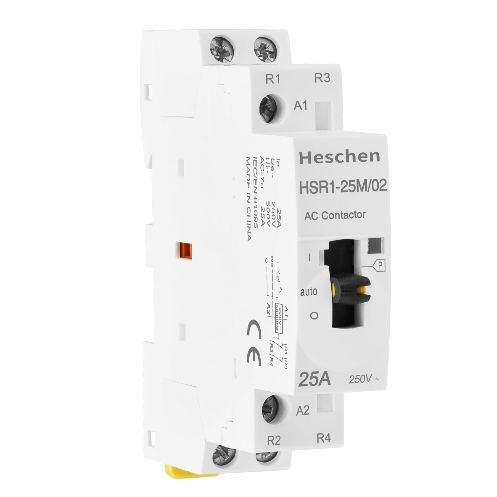 AC-7a 32A ; AC-7b 15A , Certifié CE, TUV Heschen Contacteur ca doestique, CT1-25, Ie 25A 4 pôles quatre... Contacteur 32A 220V Rail DIN Heschen Contacteur AC Domestique, HSR1-20, Ie 20A, 2 Pôles, Deux Contacteur 2 Pôles NC Heschen Haushalts-AC-Schütz, HSR1-63, 4-polig, vier normalerweise Indice : 220V/240V CA, 32 A ; Type de contact : 2NC, 2 pôles Nom du produit : contacteur AC domestique