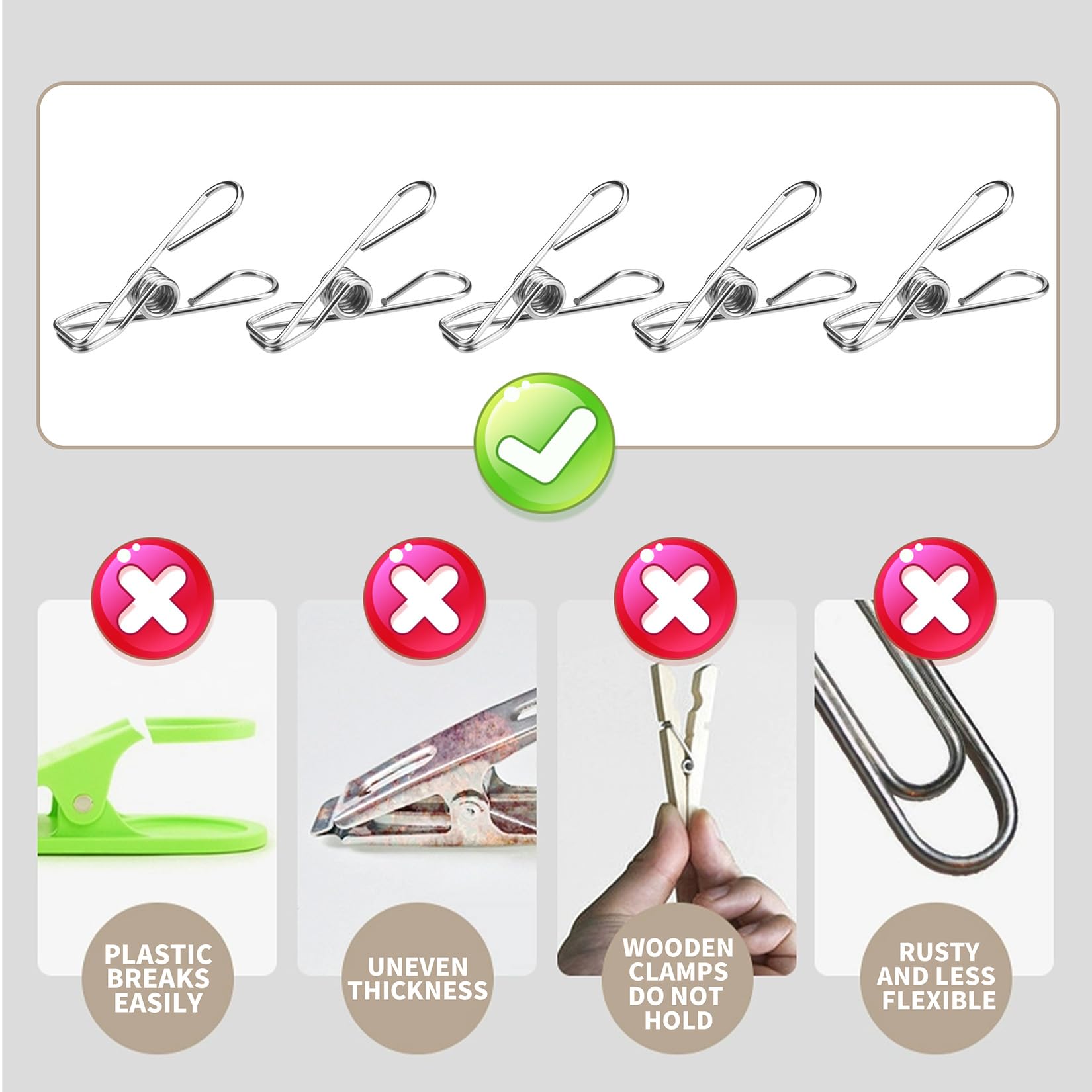 Ils sont résistants à la fragilité, à la casse, à la moisissure et à la rouille, même lorsqu'ils sont exposés au vent, au soleil et à la pluie pendant une longue période, ce qui les rend parfaits pour sécher les vêtements à l'extérieur. Ils offrent une protection supplémentaire pour tout ce que vous tenez et améliorent l'adhérence sans laisser de traces ou de plis visibles. Poignée super forte : notre pince à vêtements est conçue avec une structure à ressort robuste pour une force de serrage exceptionnelle. Le kit comprend également un sac de rangement pliable pour les pinces à linge dans lequel elles peuvent être rangées de manière ordonnée, de sorte qu'elles sont non seulement à portée de main à tout moment, mais aussi ne peuvent pas être perdues. Pinces a Linge Acier Inoxydable Pinces a Chaussettes Sous-Vetements Revêtement en PVC : les extrémités de nos pinces sont recouvertes d'un revêtement en PVC lisse qui offre une prise en main douce et antidérapante. Lot de pinces à linge : vous recevrez 48 pinces à linge de 4 couleurs différentes, une quantité suffisante pour répondre à vos besoins quotidiens pour sécher les vêtements, fixer de petits objets et bien plus encore. En plastique PP avec ressort en acier inox - donc résistantes au vent et durables. Ouverture jusqu'à 2,5cm - ça tient même les serviettes épaisses. Parfaites... Avec quatre couleurs vives, compactes et faciles à transporter, elles conviennent non seulement pour accrocher des vêtements, mais aussi comme pinces à serviettes, pinces à chaussettes, pinces à pommes de terre, pinces d'emballage alimentaire, pinces à photo, pinces à moustiquaire, pinces de cuisine, trombones et bien plus encore. Lot de 48 pinces à linge en acier inoxydable avec panier, revêtement en plastique – Pinces à linge coupe-vent sans traces pour cordes à linge, serviettes, vêtements et chaussettes Les bords des pinces sont lisses et la poignée est ergonomique, de sorte qu'elle s'adapte parfaitement à la courbure naturelle du pouce et facilite la prise en main et l'ouverture. Pinces Pour Vêtements Lourds Lot De 20 Pinces à Linge En Acier Inoxydable - Coupe-vent, Antirouille Lot 48 Pinces Coupe-vent Qualité : 48 pinces à linge résistantes pour le linge délicat en plastique solide, aux couleurs résistantes et sans odeur avec un composant extra doux et une technologie de pince avec 8 ressorts de pression en acier inoxydable Même par temps venteux, les vêtements peuvent être suspendus en permanence à la laisse sans être soufflés ou déplacés, ce qui rend l'utilisation plus apaisante.