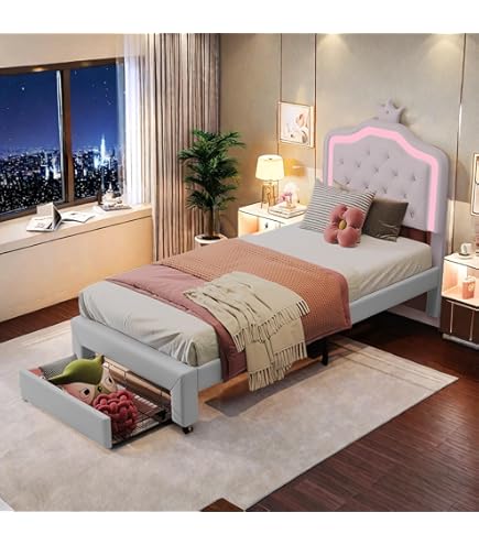 Lit Enfant 90x200 Cm En PU Rembourré, Lit En Nid Avec Tête De Lit En Forme De Nuage Et Ruban Rose Lit Avec Led Multicolore Rose Blanc 99283761 En MDF et métal, il est solide et supporte jusqu'à 160 kg. Le sommier à lattes est inclus - il ne reste plus qu'à ajouter le matelas 90x200. La hauteur de la... Lit Adolescente Tête Réglable Sommier Lattes Julyue Lit Enfant Fille 140 X 200 Cm Lit Pour Enfant Rembourré Avec Tête De Lit Sommeil Adolescente Lit Rose Design Matériaux de haute qualité: Lit enfant fille recouvert de tissu en velours doux et rempli de mousse haute densité, ce lit adolescente fille garantit un confort optimal pour les nuits paisibles de votre adolescente, tout en ajoutant une touche de modernité à son espace personnel. Tête de lit couronne réglable en hauteur: Ce lit nuage est doté d'un cadre à lattes en bois massif, qui offre un support robuste et durable. Poeahu Lit Coffre 90x200, Canapé Lit 1 Place avec Lit avec LED: ce lit pour enfant de 90 x 200 cm avec espace de rangement est équipé d'une lumière ambiante LED réglable en... Avec plusieurs modes de changement automatique et une palette de couleurs variées, les LED ajoutent une touche ludique et moderne à la chambre de votre fille tout. La hauteur de la tête de lit est réglable entre 127,5 et 132,5 cm. Motage Facile: Cette cadre de lit a une conception d'assemblage simple et est livré avec des instructions d'assemblage détaillées, de sorte que même les personnes sans expérience d'assemblage peuvent facilement assembler, ce qui vous permet d'économiser du temps et des efforts. La hauteur peut être ajustée de haut en bas de 5 cm, permettant aux enfants de choisir une hauteur adaptée et confortable en fonction de leur taille.