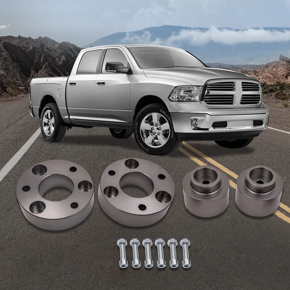 Amélioration Stabilité Et Garde Au Sol KSP Kits De Levage Avant De 5,1 Cm Pour Ram 1500 2009-2024, Kit De Levage De Nivellement De 5,1 Cm Pour Dodge Ram 1500 4WD 2009-2024, Dakota 2WD 4WD 2009-2024, Kit De Entretoises Aluminium Levage Suspension Un article de type Espaceur de roue pour RAM : combien ça coûte ? Selon le type de véhicule, la marque et les caractéristiques techniques, le prix d’un produit de catégorie Élargisseur de voie pour RAM varie de 52 à 243 Galaxy Auto Lot de 4 élargisseurs d'ailes pour Dodge Ram 1500/2500/3500 (modèles Fleetside Pour Dodge Pour Ram 1500 4WD 2009-2024 Kit De Levage De Nivellement En Aluminium 3 Avant + 2 Arrière Ashata Kit de nivellement de levage Kit de levage de nivellement d... Fabriqué en bon alliage d'aluminium, dur, durable et a une longue durée de vie Mettre à niveau l'avant avec l'arrière. L'entretoise de roue de voiture augmente efficacement l'empattement, offrant une meilleure stabilité à votre véhicule lors de la conduite à grande vitesse et des virages serrés Montage :Pour Dodge Pour Ram 1500 4WD 2009-2019 (ne convient pas aux modèles 2WD ou Mega For Cab)Pour Dodge Pour Ram 1500 2WD/4WD 2019-2024 (nouveau style de carrosserie)Ne convient pas aux modèles 2WD pour les modèles Mega Cab / Pour les modèles Rebel / Pour les modèles WarlockNon compatible avec les modèles de suspension pneumatique d'usineSpécification:Épaisseur des entretoises: avant 40mm (1,5po); arrière 51mm (2po)Hauteur de levage : avant 3 ; arrière 2(L'épaisseur de l'entretoise de levage et la quantité de levage ne sont pas un rapport de 1 à 1 en raison de la géométrie de la suspension)Type de pièce : Kit de levage de suspensionFinition de surface : finition anodiséeMatériau : aluminium T6061Type de conduite : 4 roues motricesEmplacement sur le véhicule : gauche, droite, avant, arrièreTemps d'installation : 2 à 3 heuresCaractéristiques:Garde au sol accrue pour les jantes et les pneus plus grands.