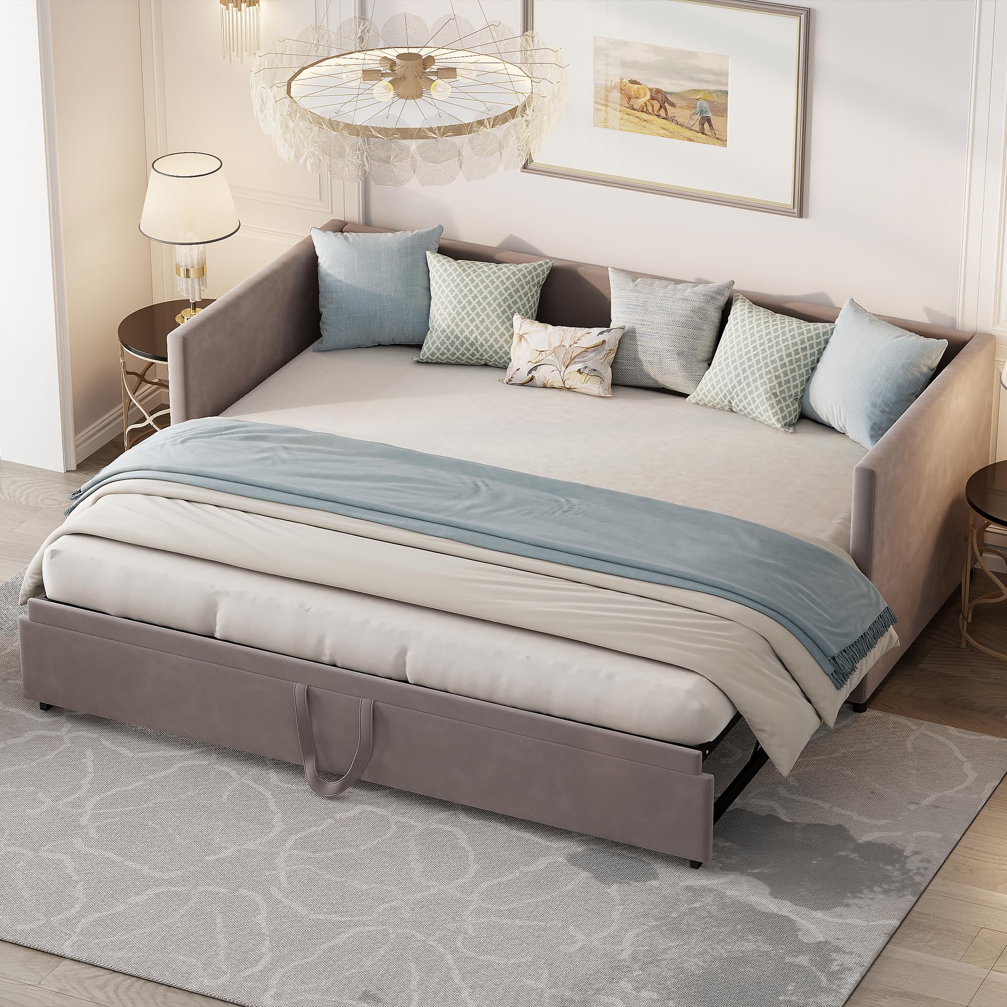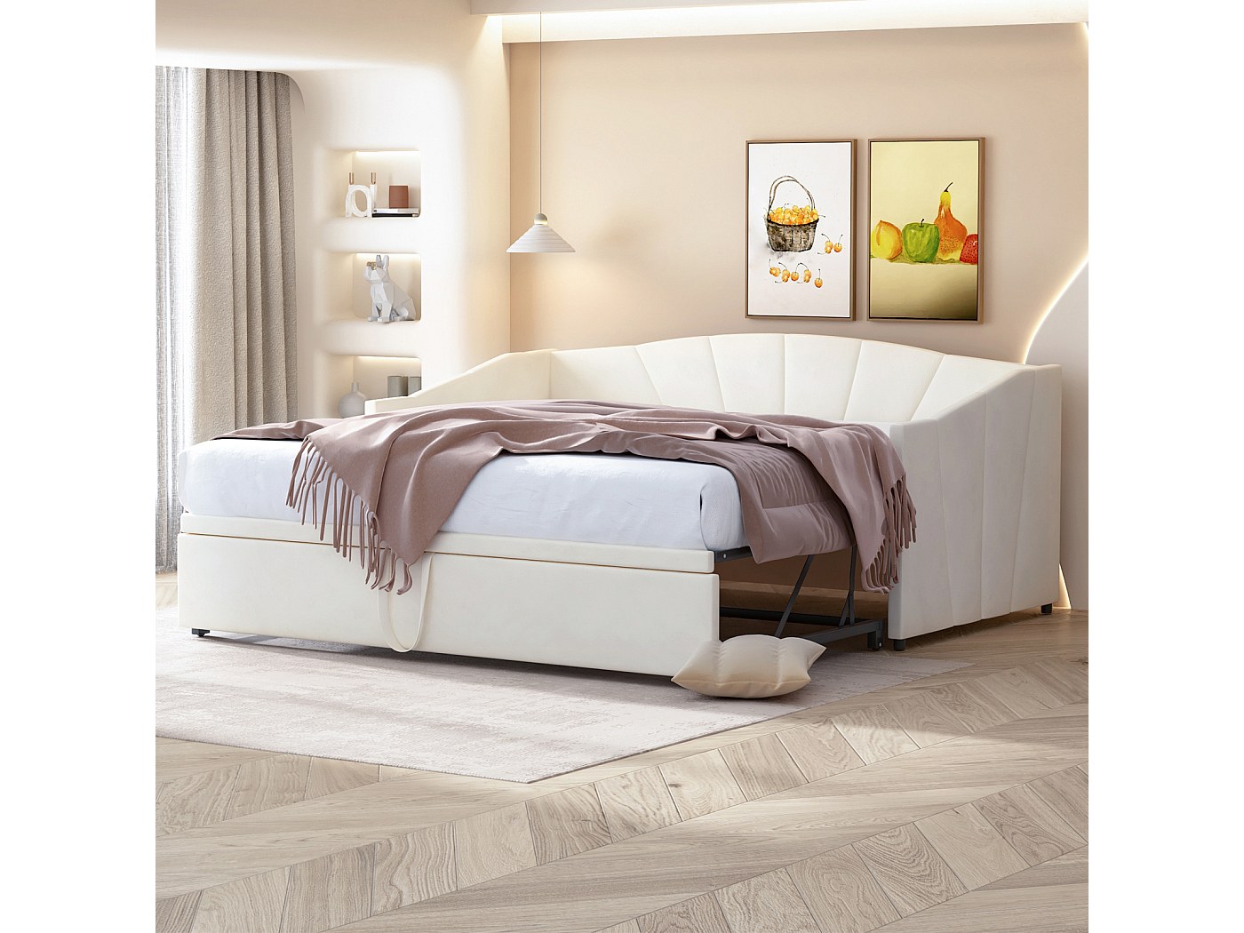 Spécifications : Type de produit : Canapé-lit convertible Nom du produit : Canapé-lit convertible 90/180 x 200 cm avec rangement, éclairage LED et prise USB, sommier à lattes, beige Couleur : Beige Matériau principal : Toile de jute Revêtement : Lin Structure : Métal contreplaqué MDF Dimensions du produit : Longueur : 214 cm Largeur : 102 cm Hauteur : 74 cm Poids : 54,34 kg... Matériau du produit : velours + bois + métal. La structure en MDF de qualité supérieure garantit résistance et une longue durée de vie, tandis que la circulation de l'air contribue à un repos optimal pendant la nuit. Si vous êtes à la recherche de canapés-lits doubles qui optimisent l'espace sans sacrifier le style, c'est le bon produit pour vous. Cadre extensible : grâce à son cadre extensible, le canapé-lit 2 places peut facilement se transformer en lit 2 places. C'est la solution idéale pour ceux qui recherchent un canapé-lit 2 places peu encombrant, pratique et facile à assembler, parfait pour accueillir des amis ou pour des nuits soudaines. Sommier à lattes en bois : notre canapé-lit est doté d'un solide sommier à lattes en bois qui offre un maximum de soutien pour votre matelas. Canapé Lit Convertible Beige élégance Et Confort 180 X 84 X 72 Cm Beige Chaleureux Aux Nuances Naturelles 91843690 En quelques secondes, le lit passe d'une taille de 90 x 200 cm à 180 x 200 cm, ce qui permet d'accueillir confortablement les invités. Matelas inclus : non Capacité de charge maximale : 300 kg. Canapé Lit 2 Places Design Canapé Lit Convertible 2 Places 90/180 X 200cm, Cadre De Canape Lit 2 Places Convertible Avec Sommier à Lattes, Extensible, Velours(sans Matelas) (Gris Structure Lattes Bois Canapé Lit Dimensions du lit : 90/180 x 200 cm. Longueur de la surface de couchage : 201 Largeur de la surface de couchage : 91,5 cm. Le matelas est vendu séparément., Couleur : gris/beige. Un canapé-lit est un meuble pratique qui vous fait gagner de l'espace et remplit une double fonction. Et avec un canapé-lit beige, vous bénéficierez en outre d'une couleur tendance pour décorer votre intérieur. Notre sélection de canapés-lits beiges propose différents formats et designs répondant à des besoins variés Design fonctionnel et peu encombrant : notre canapé lit 2 places est parfait pour les environnements compacts. Bas : 10 cm Nombre de personnes recommandé : 2 personnes Outils supplémentaires requis : tous les outils/tournevis inclus Nombre de colis : 2 Avertissements : 1., Le matelas n'est pas inclus., 2., Les dimensions détaillées peuvent être consultées dans l'image des dimensions du produit., 3., La couleur réelle du produit peut être légèrement différente de celle de la photo affichée en raison de nombreux facteurs tels que la luminosité de l'écran ou les paramètres de votre appareil. Le produit est livré en deux paquets séparés qui pourraient arriver à des jours différents. Le cadre inférieur est facile à extraire et à ranger, ce qui permet d'économiser de l'espace précieux et rend ce produit idéal pour les petits appartements. Hauteur du matelas recommandée : Dessus : 13-14 cm. Montage facile : le montage du canapé-lit est simple grâce à des instructions claires (français non garanti).