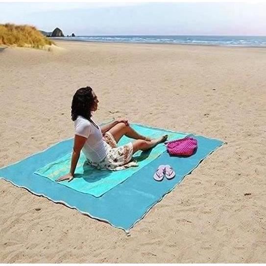 Tapis de Plage, 210200cm Couverture de Pique-Nique Imperméable Anti... Portable et léger : le tapis de plage se replie facilement à une taille compacte de 16 x 9 x 5 cm, ce qui le rend pratique à ranger et à transporter. Dimensions spacieuses : avec ses dimensions de 140 x 200 cm, notre tapis de plage offre suffisamment d'espace pour vous et vos amis ou votre famille pour vous détendre confortablement à la plage, en camping ou en pique-nique. Tapis Sans Sable Avec Piquets Tapis De Plage Imperméable 200x140 Cm,Portable Couverture De Plage,pour Les Voyages,Le Camping,la Randonnée,Vacances,etc - Maison Tapis Imperméable Portable Ensemble complet de tapis de plage : notre tapis de plage contient tout ce dont vous avez besoin pour une journée parfaite en plein air : 1 tapis, 4 piquets, 1 sac de rangement avec cordon de serrage et 1 mousqueton pour un transport facile. DEWUR Couverture de plage sans sable XXL - Serviette de plage... Dimensions : 140 x 200 cm Couleur : bleu et gris Tapis Pique-nique Dégradé Bleu Tapis De Plage Imperméable 200x140 Cm - Anti-Sable Avec 4 Piquets, Pour Camping, Pique-nique Drap Plage 200x140cm