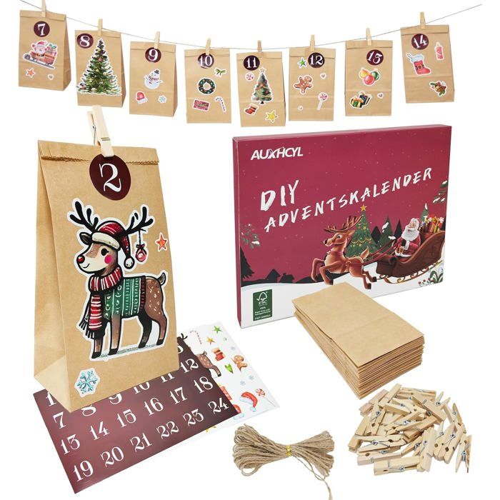La ficelle de jute naturelle et les pinces en bois rustique s'intègrent parfaitement dans n'importe quel intérieur et créent immédiatement une atmosphère chaleureuse de Noël Ils peuvent être réutilisés année après année sans se décolorer ni s'abîmer et offrent une alternative durable aux calendriers jetables. Différentes tailles disponibles : les sacs de calendrier de l'Avent contiennent 12 grands sacs (13 x 18 cm) et 12 petits sacs (10 x 15 cm) pour une variété de cadeaux ! Décoration de Noël polyvalente : embellissez votre look de Noël avec ces charmants sacs décoratifs ! Calendrier de l'Avent Vide a Remplir Soi Meme 2025 Femme Homme Respectueux de l'environnement et durable : fabriqués en tissu polyester de haute qualité, ces sacs sont doux, extensibles, inodores et lavables. Chaque sac magnifiquement conçu présente des motifs de Noël classiques tels que des flocons de neige, des rennes et des chaussettes, et est numéroté de 1 à 24 pour une surprise quotidienne. Calendrier de l'Avent à remplir] : Le paquet contient 24 sacs en papier pour calendrier de l'Avent imprimés de motifs de Noël blancs (28x15x9 cm), 1 à 24... Que ce soit pour les enfants, les amis ou les collègues, cet ensemble répond à tous vos souhaits de cadeaux et rend l'organisation des surprises un jeu d'enfant. Calendrier de l'Avent 2025 à remplir, 24 sachets de calendrier de l'Avent à remplir, en tissu, sacs de l'Avent à remplir soi-même pour enfants et adultes Remplissez-les et découvrez chaque année la joie de Noël – combinez la conscience environnementale avec un charme festif Calendrier De L'avent Original Calendrier Avent à Remplir Calendrier De L'Avent 2024 à Remplir Soi-même - 24 Sachets 18x13 Cm Calendrier De L'avent 2024 Bois Calendrier De L'avent Typology Le Forfait Comprend] 24 calendriers de l'avent de noël pour combler les enfants, 3 couleurs différentes, 8 sachets par couleur. 2 x 24 autocollants avec les numéros (du 1er au 24 décembre). 24 pinces en bois, 2 cordes de chanvre de 10 m, 24 cartes à remplir avec des éléments de sapin de noël. Chaque sac de calendrier de l'avent mesure 13,5 x 9,5 cm, chaque clip 3,47 x 1,0 cm. Un... Les grands compartiments sont parfaits pour les mini jouets, les produits de soins de la peau ou de délicieuses collations, tandis que les petits compartiments sont parfaits pour les chocolats, les boucles d'oreilles ou les cartes manuscrites.