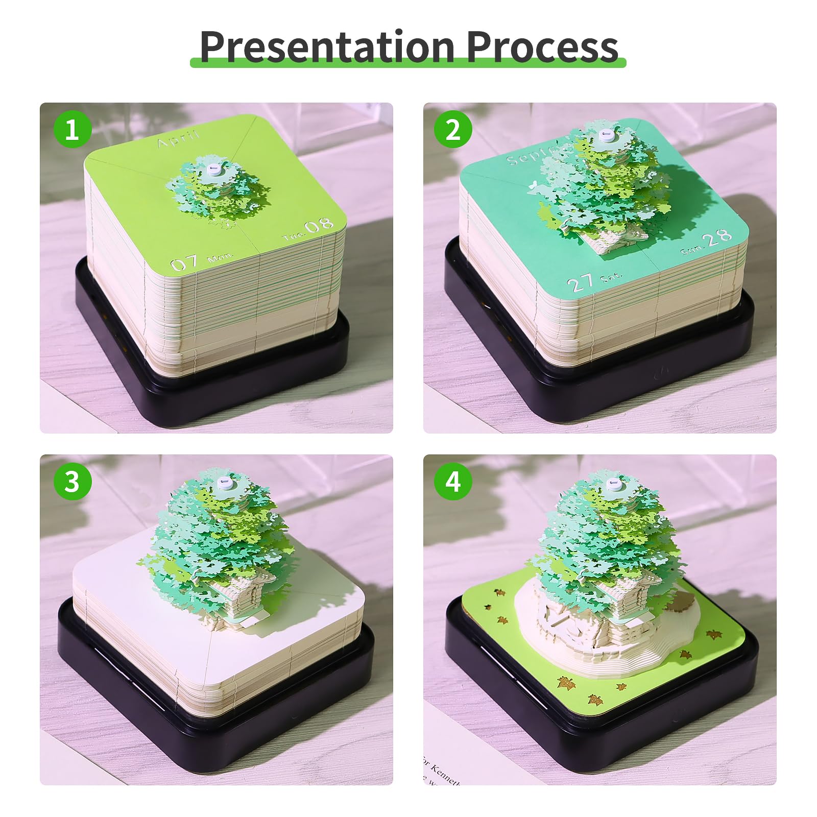 La reliure manuelle est robuste et résistante aux dommages. Planifiez votre calendrier annuel en toute confiance, sachant que l'encre ne coulera pas, garantissant une efficacité optimale. - Cette combinaison innovante de lumières découpées en papier et de notes autocollantes offre non seulement une fonctionnalité pratique, mais aussi une délicate lumière décorative la nuit, créant une atmosphère onirique. Déchirez un morceau de papier chaque jour pour noter votre bonne humeur et votre emploi du temps. Un cadeau de noël surprenant et pratique. Ces LED créent une atmosphère chaleureuse et lumineuse et créent une décoration de bureau unique. C'est un cadeau surprenant et pratique pour toutes les fêtes. - Fabriqué à partir d'un papier spécial, ce calendrier 3D de la cabane dans les arbres avec cabane dans les arbres sculptée en papier conserve sa texture. Calendrier de bureau 3D 2025, calendrier 2025, bloc-notes en papier 3D... 【Calendrier multifonction 3 en 1】Ce bloc-notes 3D est non seulement parfait pour suivre les dates, mais aussi un espace de travail idéal pour votre bureau à domicile. 【Décoration artistique et pratique】Chaque feuille peut être détachée individuellement pour créer une présentation créative et raffinée, à la fois décorative et artistique. En détachant chaque feuille, une magnifique et surprenante cabane dans les arbres apparaît sous vos yeux. KALWEL Calendrier 3D 2025 – Cabane dans les arbres, bloc-notes 3D Artsy Pads Calendrier 2025, carnet de notes déchiré à la main, modèle de sculpture en papier, ornements créatifs, bloc-notes vert 【Calendrier 2026 avec calendrier 3D】Ce calendrier 2026, inspiré des cabanes dans les arbres, présente des sculptures complexes pour un effet tridimensionnel d'un réalisme saisissant. L'écriture est fluide et l'encre ne transparaît pas. Chaque page présente un design 3D unique, pour un plaisir d'utilisation accru. 【Bloc-notes 3D lumineux à LED】Ce modèle en papier est équipé de LED qui s'illuminent la nuit. Il offre une écriture plus fluide, une gravure plus nette et un déchirement facile. Calendrier 3D Memo Pads 2026, Créative Circus Paper sculpture Art... Bloc-notes Sculpture Papier Lumineux 2025 Calendrier De Bureau 3D, Calendrier 3D De La Cabane Dans Les Arbres, Calendrier Bloc-Notes Avec Lumière LED, 3D Papier Sculpture Memo Pad Pour La Maison De Bureau (Vert Bloc-notes 3D Avec Lumière 【Matériaux écologiques et de haute qualité】Ce bloc-notes 3D est fabriqué à partir de papier durable de haute qualité, qui dure un an sans se décolorer ni se déformer. Appuyez sur l'interrupteur situé en bas pour activer la douce lumière LED. La couleur et la texture du papier rehaussent le réalisme du paysage tridimensionnel.