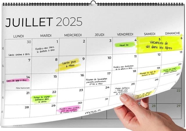 Grand Calendrier Mural 2026 XXL Calendrier 2026 Mural (74.2 X 52.5 Cm) Plié Agenda Annuel, Agenda Décoration Murale Pratique Calendrier Mural Annuel Xxl 2024 (74,2 X 52,5 Cm) - Format Paysage Plié... Calendrier Annuel 2025 Avec Jours Feries Peut être écrite avec presque n'importe quel stylo Calendrier 2025 mural (74.2 x 52.5 cm) Plié Agenda Annuel, Agenda Mural... Elle présente un design clair avec des mois séparés par des couleurs - les bords pliés s'intègrent parfaitement dans le calendrier ! PAPIER DE PREMIÈRE QUALITÉ:Papier de haute qualité, robuste, séchant rapidement et ne s'enroulant pas. Multifonctionnel:Ce calendrier 2025 mural convient à la vie quotidienne, au travail, aux vacances scolaires ou comme agenda de vacances. Le paquet comprend:1 x calendrier mural grand format/striped calendrier 2025 grand format, 4 feuilles d'autocollants décoratifs et un autocollant doux double face.
