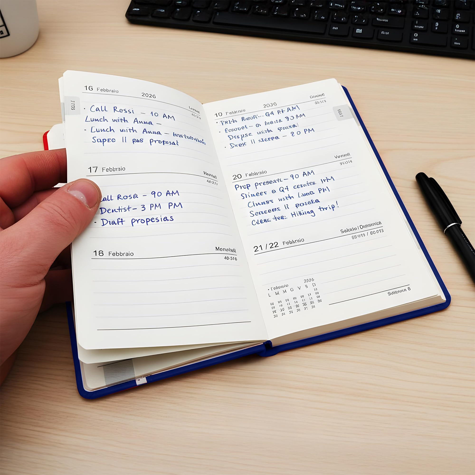 Leddy Living présente l'agenda semainier 2026, conçu pour ceux qui souhaitent combiner élégance, praticité et durabilité. C'est un choix durable pour ceux qui veulent un produit soigné dans les détails et respectueux de l'environnement. Le papier doux au toucher et sans traitement chimique agressif, garantit une expérience d'écriture fluide et agréable avec n'importe quel stylo ou crayon. Chaque semaine est répartie sur deux pages, pour écrire de manière ordonnée et immédiate, sans sacrifier l'espace. Papier écologique non blanchi – Fabriqué à partir de papier naturel sans blanchiment optique et traitements chimiques. Parfait pour ceux qui aiment organiser leur travail et leur vie privée avec efficacité et clarté. Agenda Papier Non Blanchi Leddy Living Agenda 2026 Settimanale F.to A5 14x21 Cm Copertina Soft Touch Ecologica Carta Non Sbiancata Design Elegante E Funzionale Da Gennaio A Dicembre In Italiano (ROSSO Organiseur Personnel Couverture Soft Touch Carnet A5 couverture soft-touch 100 pages lignées et numérotées Fonctionnalité et organisation parfaite Comprend de l'espace pour les notes, les projets et les listes à faire, avec disposition ordonnée et lisible. Un agenda conçu pour vous accompagner toute l'année, du 1er janvier au 31 décembre 2026, avec une vision hebdomadaire pratique qui vous permet de planifier vos rendez-vous, vos engagements et vos objectifs avec clarté. Écriture fluide et agréable – La texture douce du papier garantit une excellente glisse avec des stylos, des crayons et des feutres, sans bavure. David Fussenegger Couverture SOFT TOUCH réversible pour INTERISMO... Le design minimaliste et moderne s'adapte parfaitement à chaque contexte, du travail à la vie personnelle. Protège votre agenda pendant un usage quotidien et donne un aspect raffiné, idéal pour les étudiants et les professionnels. Un choix durable pour ceux qui aiment écrire de manière authentique et respectueuse de l'environnement. Marque. Leddy Living · Couleur. gris · Matériau de revêtement. Papier cartonné · Année du modèle. 2026 · Format. Calendrier jour par jour · Taille de feuille. 10x18... Couverture Soft Touch élégante et durable - Finition veloutée au toucher, moderne et professionnelle. Format compact 10 x 18 cm – Léger et pratique à emporter partout. Couverture Soft Touch au design élégant La couverture souple et veloutée soft touch donne un aspect raffiné et professionnel, protégeant les pages et rendant l'agenda durable à l'usage quotidien.