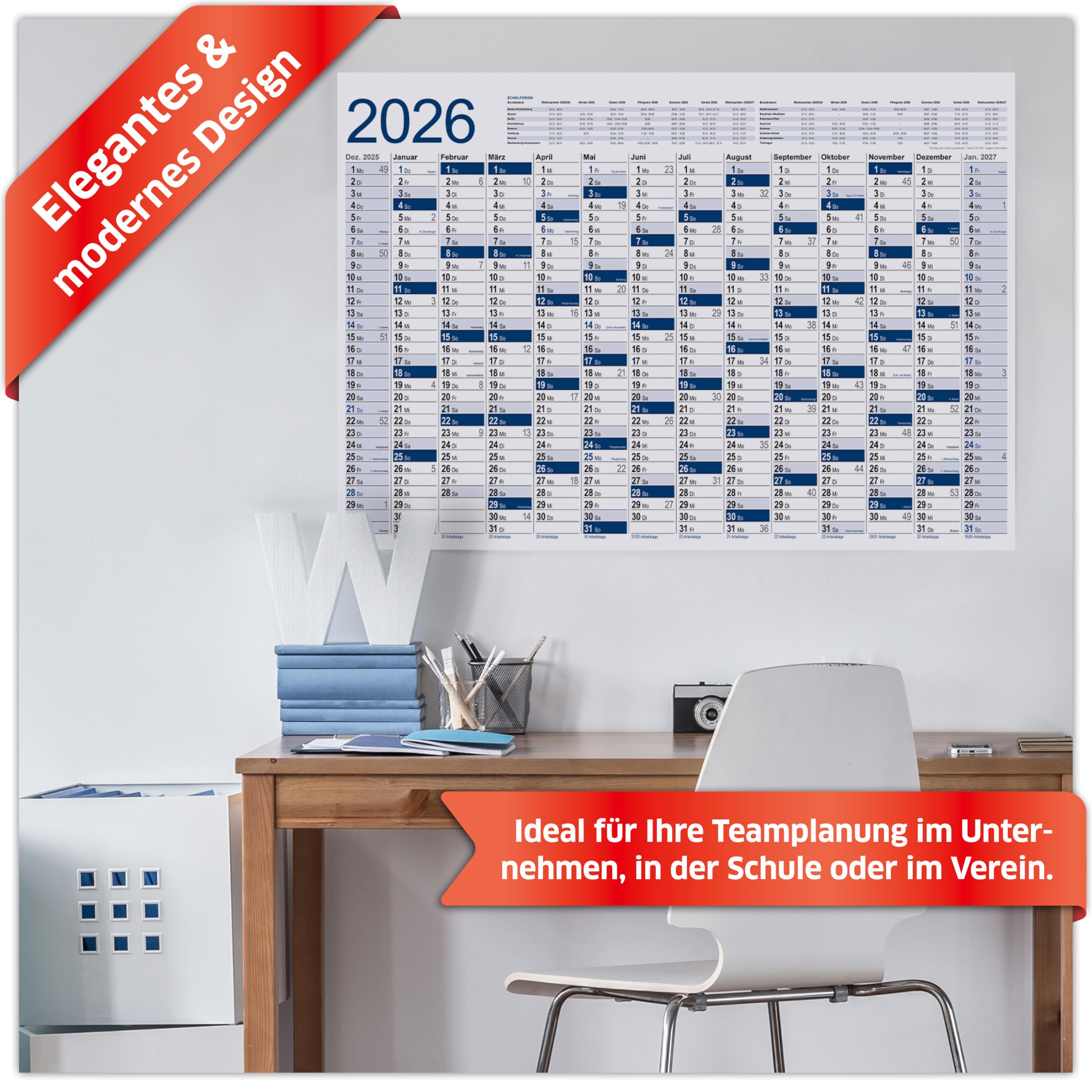 Planning mural 2026 | Papier Tigre Format Compact et Pratique]Ce calendrier mural 2026 présente des dimensions optimales de 26x18 cm, parfaites pour une intégration discrète dans tous les espaces. Son format pensée offre une excellente visibilité sans encombrer les murs, idéal pour les bureaux et les pièces à vivre Calendrier Avec Semaines Calendrier Mural 2026 XXL | Planificateur A1 Jours Fériés Fr Calendrier Annuel 2026 Son format pensée offre une excellente visibilité sans encombrer les murs, idéal pour les bureaux et les pièces à vivre. 📋【Organisation Mensuelle Complète】Chaque mois dispose de cases généreuses permettant d'inscrire rendez-vous, échéances et événements importants. Calendrier mural 2026. Faites revivre vos souvenirs avec l'un de nos superbes calendriers à thème. Profitez de nos thèmes 100% gratuits pour créer un... 🔵【Design Élégant en Bleu】Arborant une élégante tonalité bleue raffinée, ce calendrier apporte une touche d'esthétisme moderne à votre décoration. Les numéros de semaines et jours fériés sont clairement indiqués pour une planification annuelle optimisée. Son design épuré en fait un outil fonctionnel autant qu'un élément décoratif raffiné pour tout intérieur. 🏢【Utilisation Polyvalente】Idéal pour le milieu professionnel, éducatif ou domestique, ce calendrier mural s'adapte à tous les besoins organisationnels.
